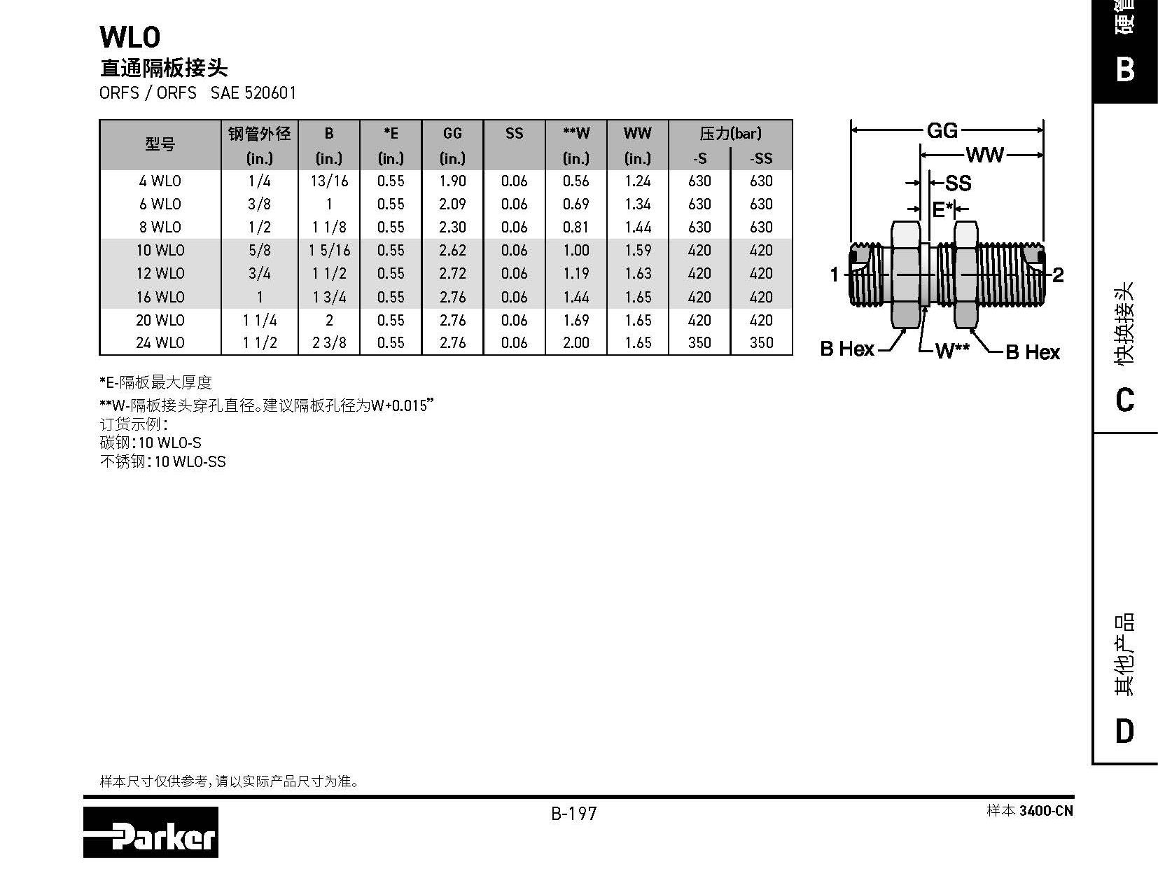 WLO 直通隔板接頭 ORFS / ORFS SAE 520601