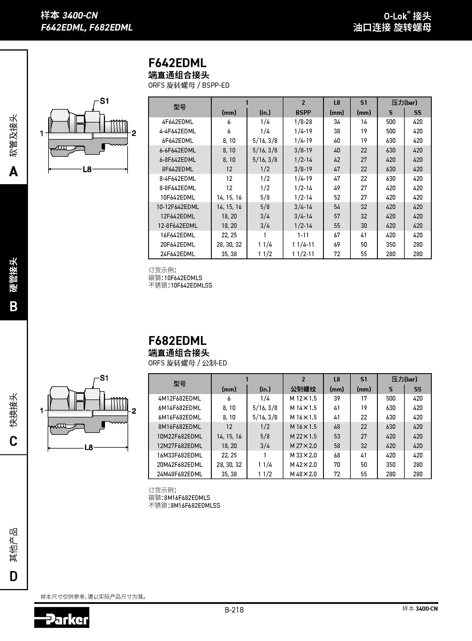 F642EDML 端直通組合接頭 ORFS 旋轉(zhuǎn)螺母 / BSPP-ED