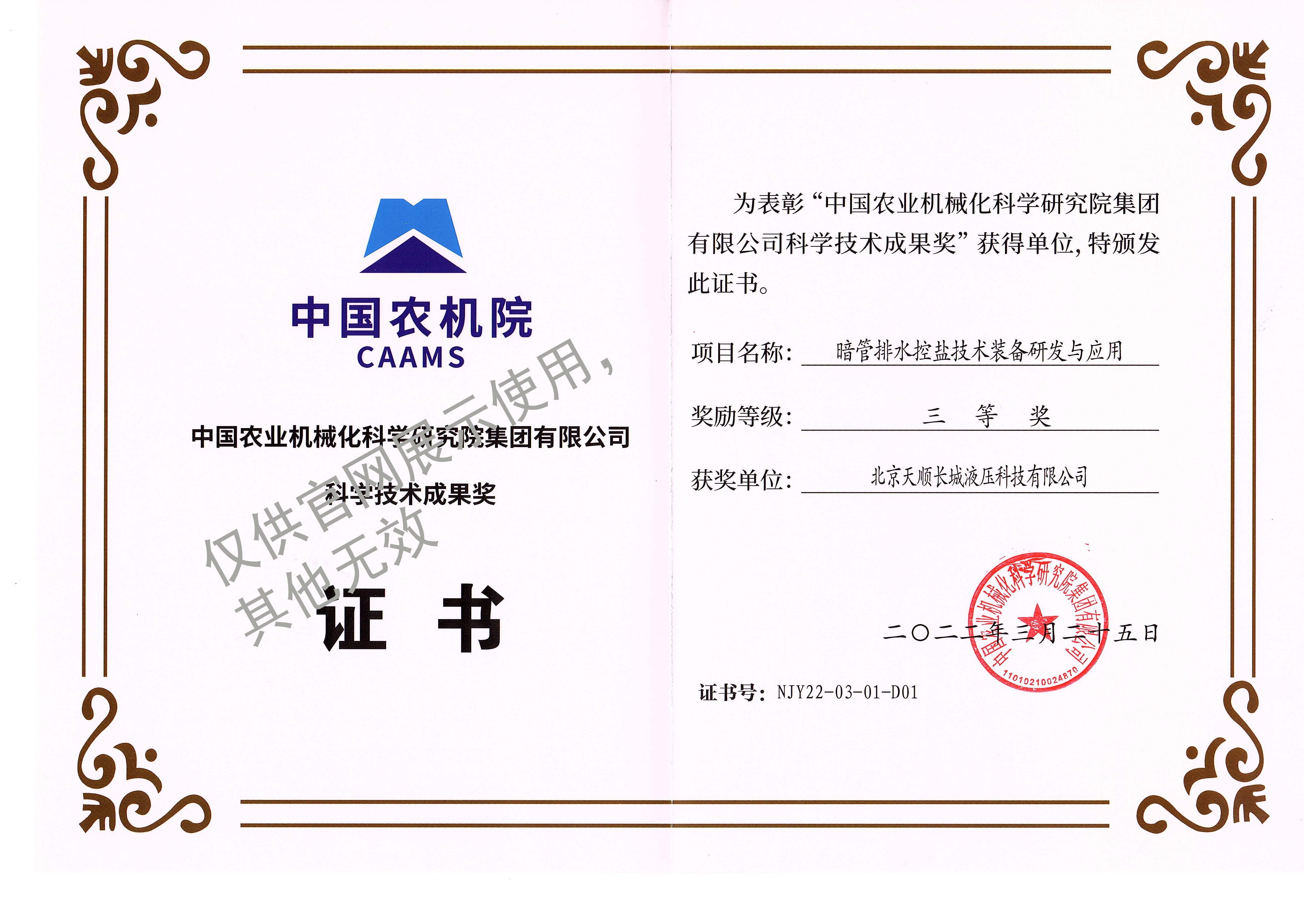 暗管排水控鹽技術(shù)裝備研發(fā)與應(yīng)用-中國(guó)農(nóng)機(jī)院科學(xué)技術(shù)成果獎(jiǎng)三等獎(jiǎng)-NJY22-03-01-D01-2022.03.25