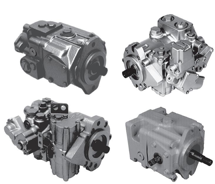 M35,M44,M46泵上的集成補油泵為系統(tǒng)提供補充液壓油,冷卻油液及M46泵控制所需壓力油。M25泵可接受來自于輔助回路或串接于泵輔助安裝法蘭盤上齒輪泵輸出液壓油。40系列泵后端蓋上可選配一系列的輔助安裝法蘭以滿足相關(guān)應(yīng)用中串泵要求。M46泵可選配手動,液壓及電氣驅(qū)動比例排量控制,也可選配電控三位。M25,M35,M44泵僅有耳軸型式的直接排量控制可選。