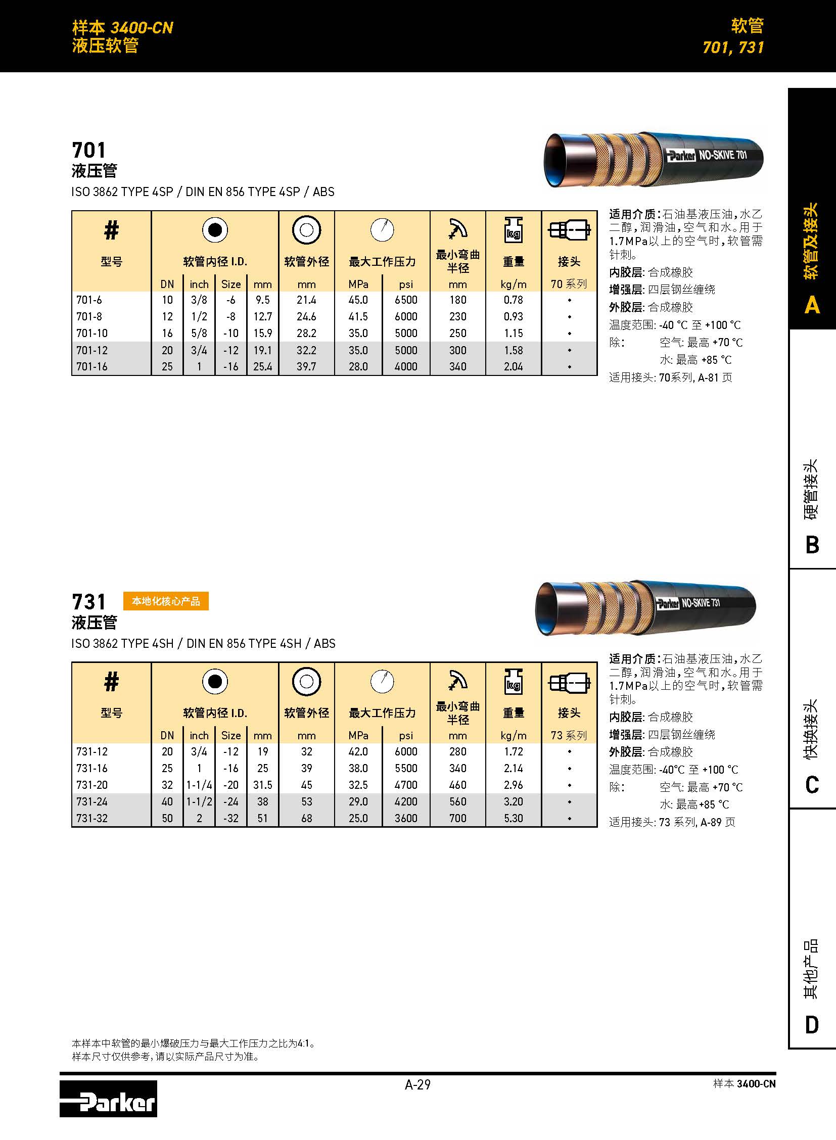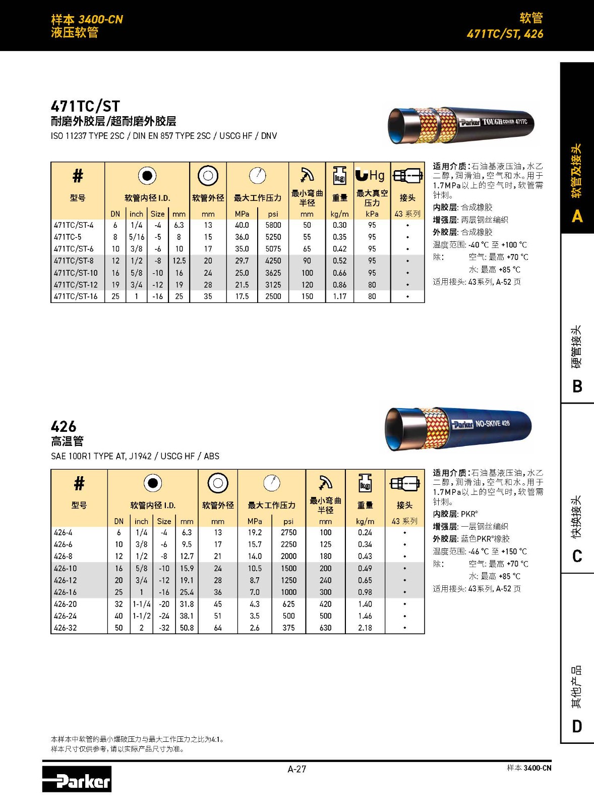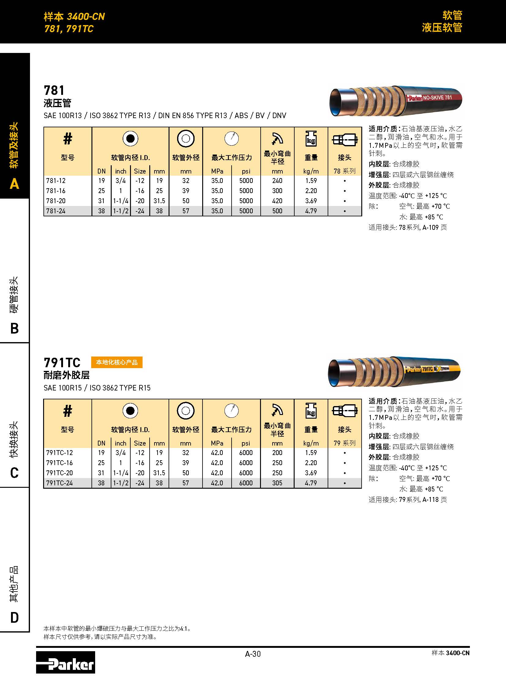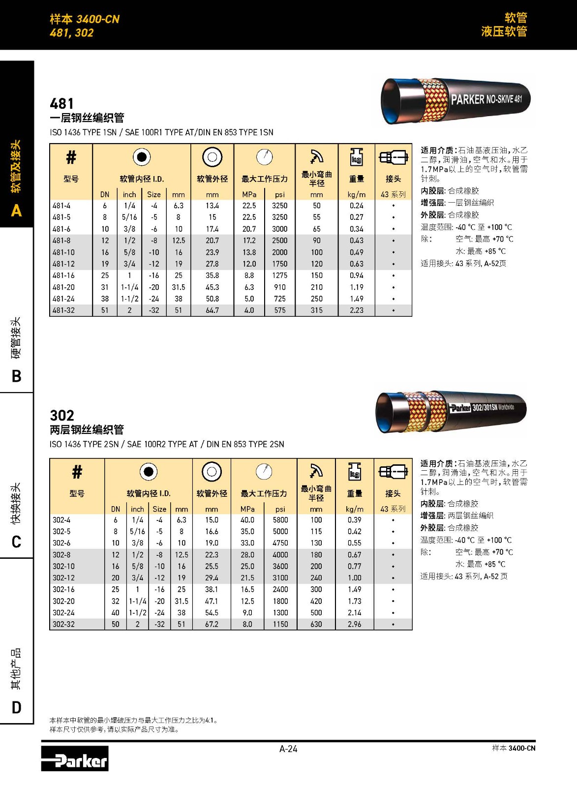 3層鋼絲編織,4SP 工作壓力