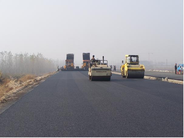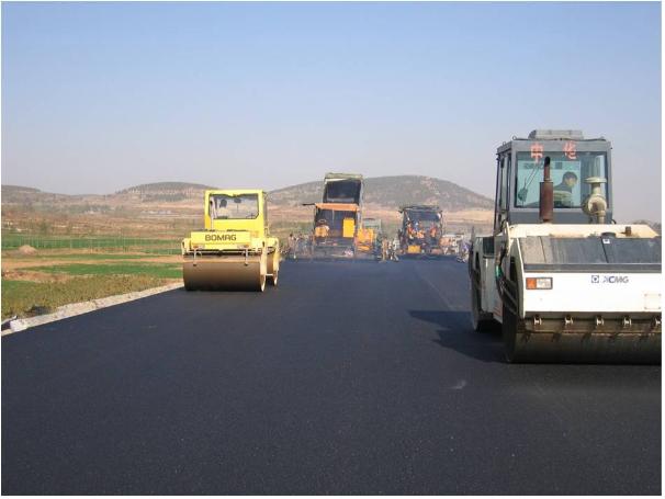 SP120山東膠洲204國(guó)道12m面層攤鋪施工現(xiàn)場(chǎng)