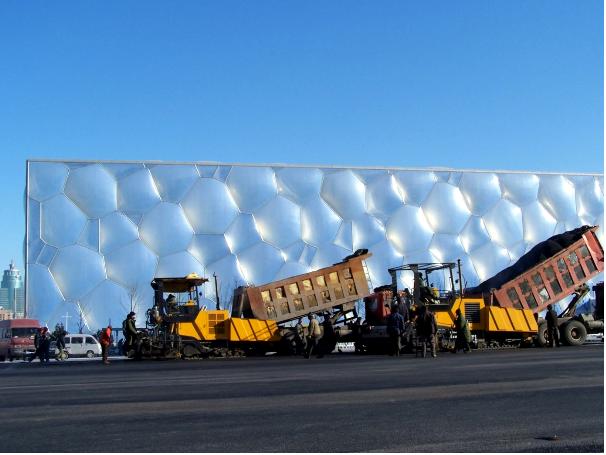 SP90S奧運(yùn)工程水立方雙機(jī)作業(yè)現(xiàn)場(chǎng)