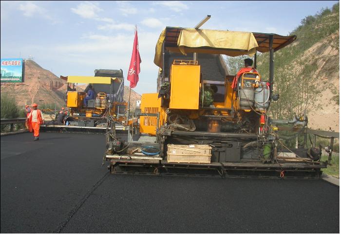 SP120威乳高速柔性基層雙機(jī)攤鋪施工現(xiàn)場(chǎng)