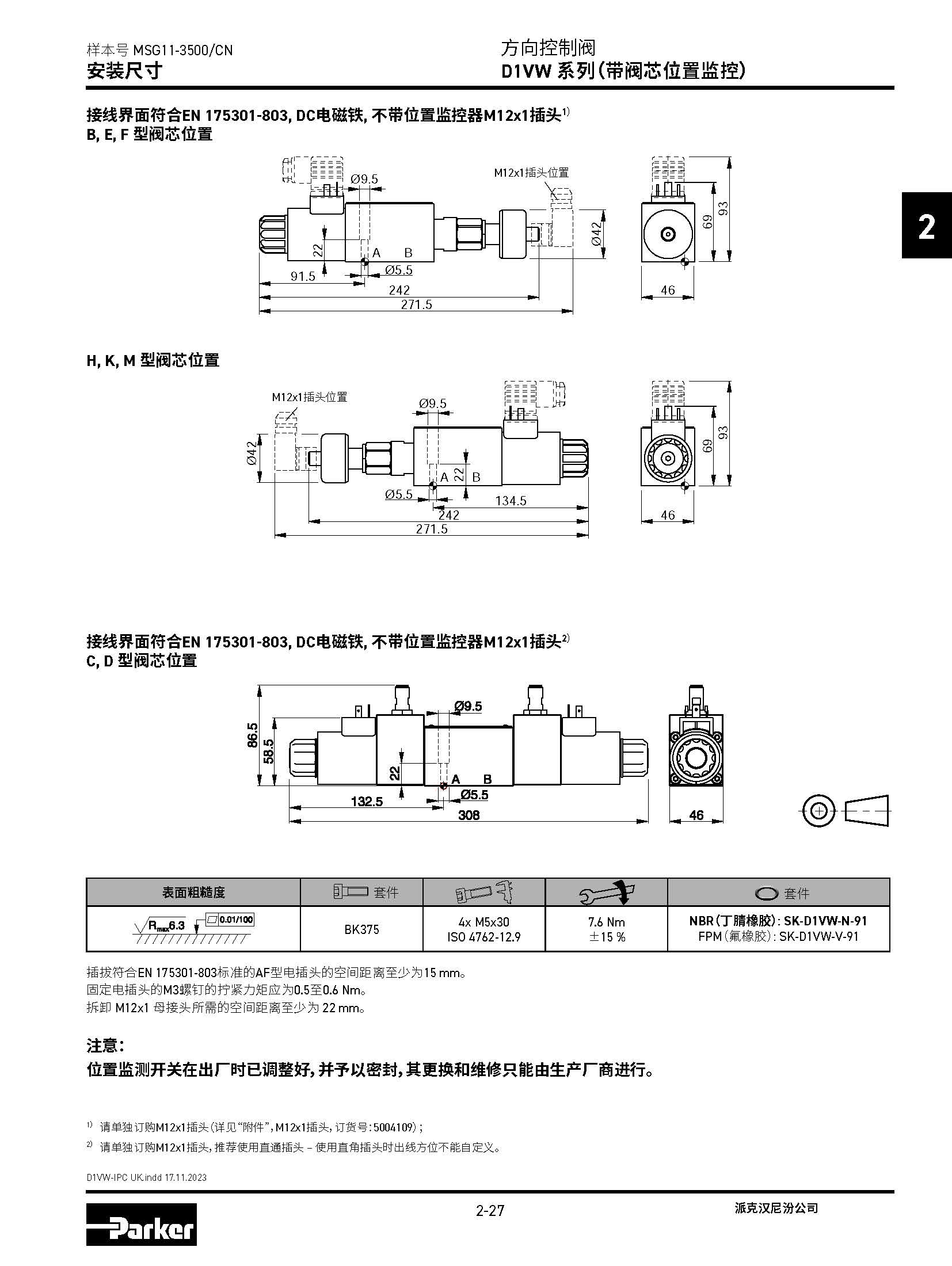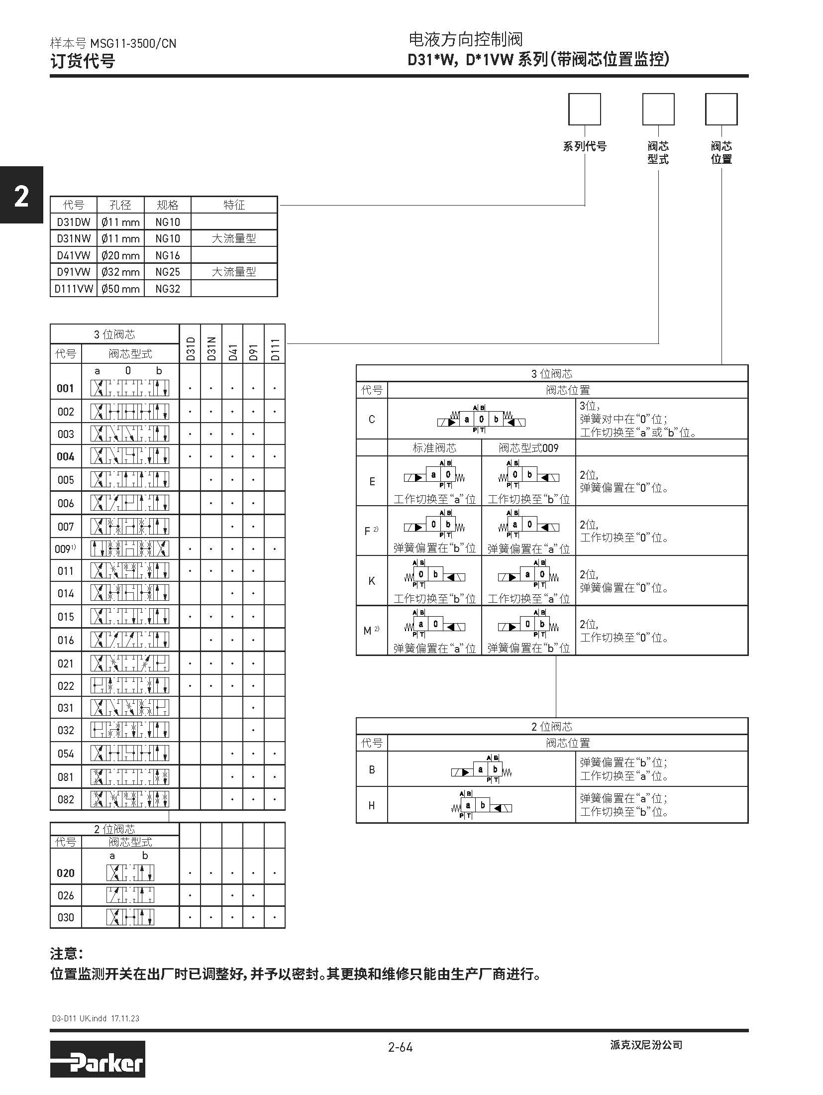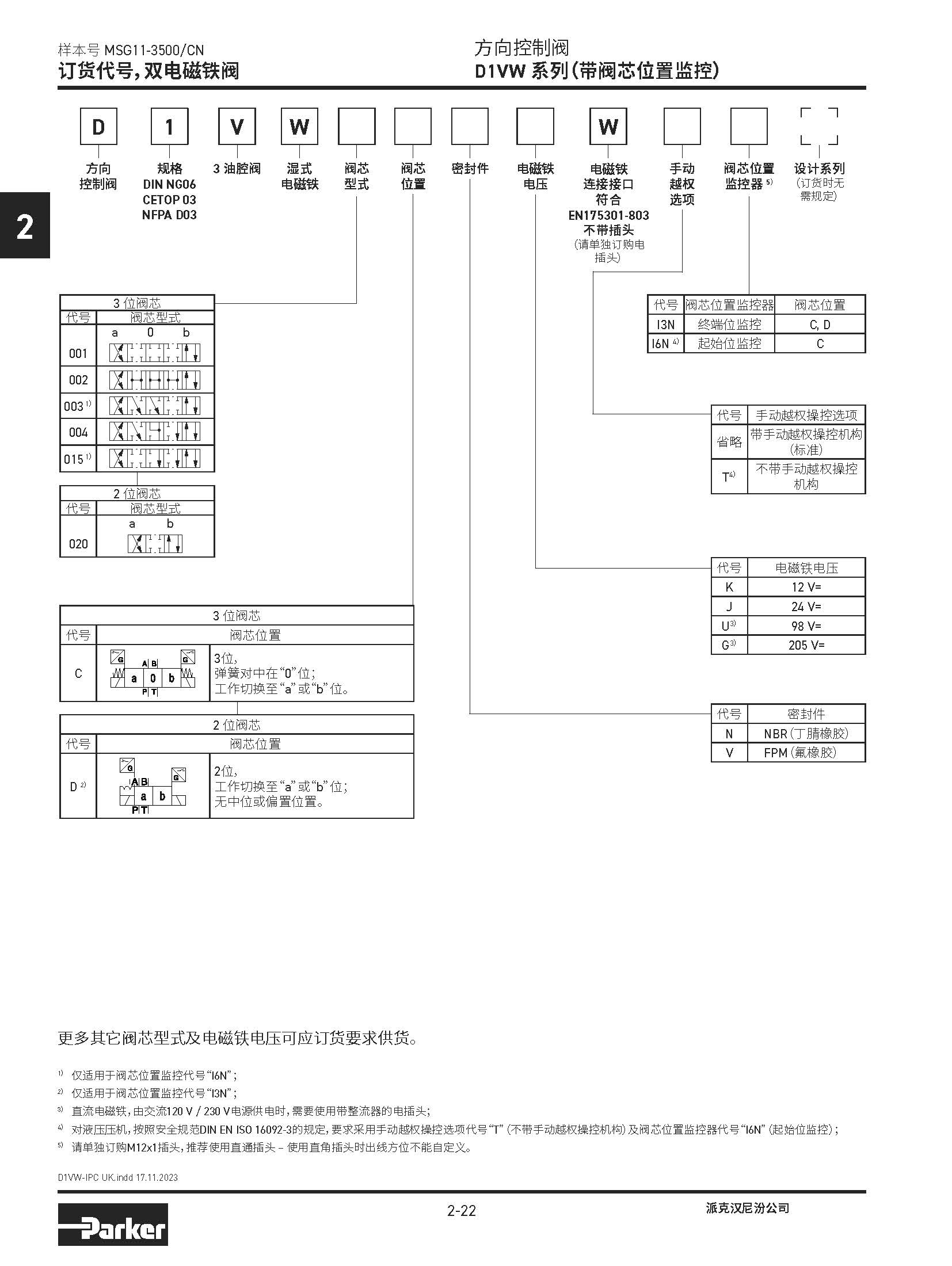 方向控制閥 D1VW 系列(帶閥芯位置監(jiān)控)