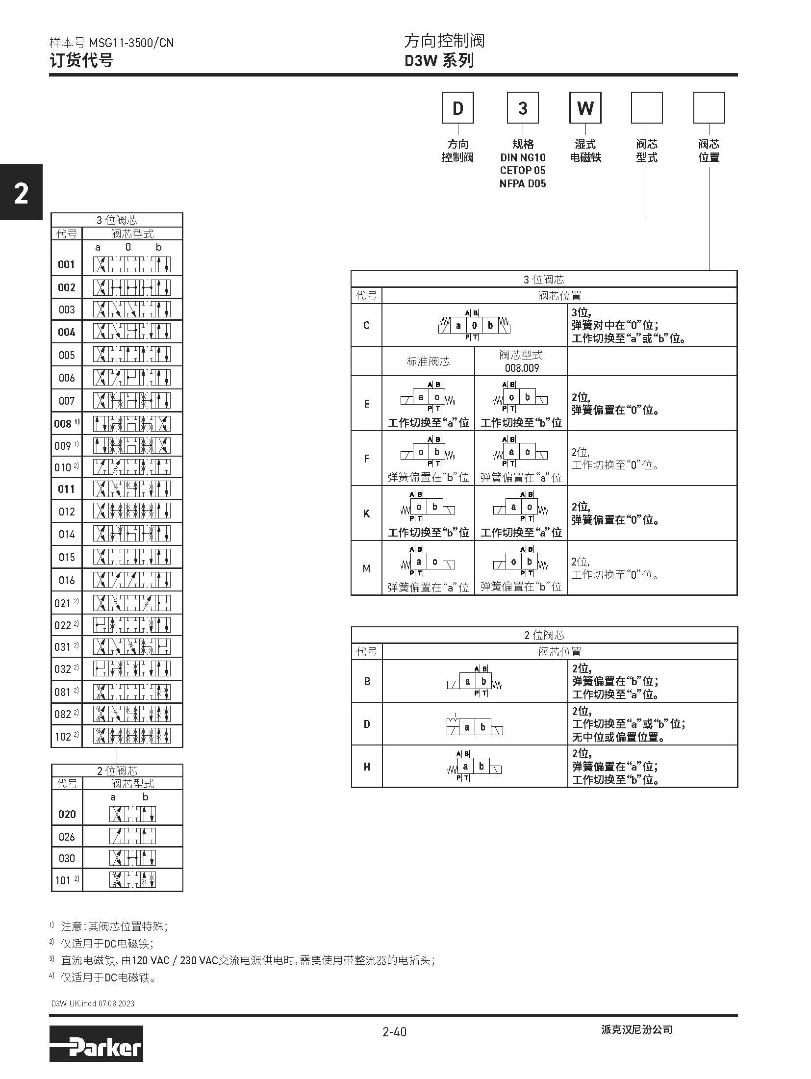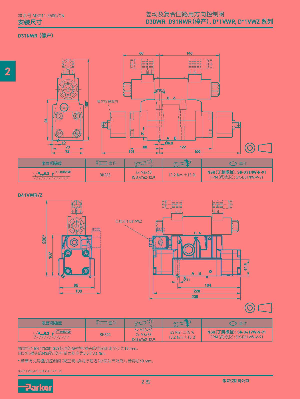 差動(dòng)及復(fù)合回路用方向控制閥 D3DWR, D31NWR(停產(chǎn)), D*1VWR, D*1VWZ 系列