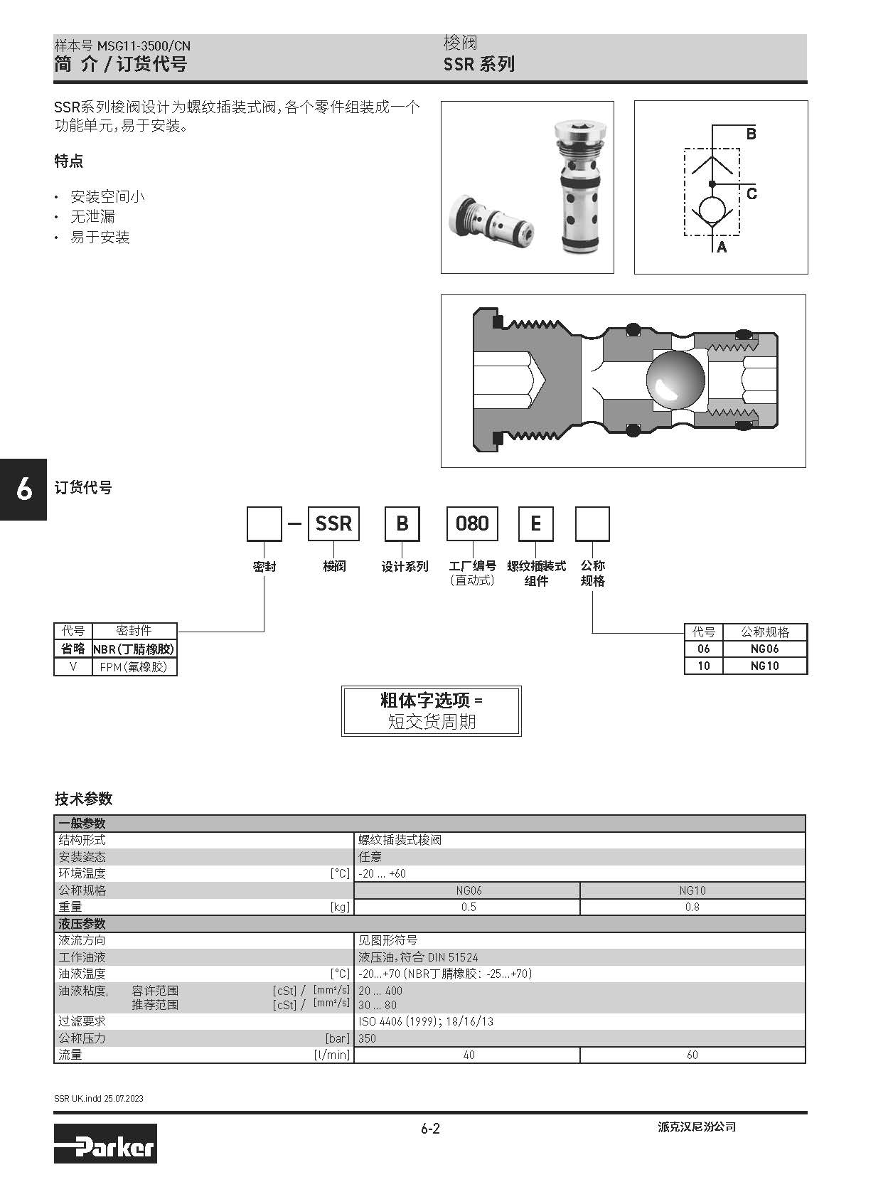 SSR系列梭閥設計為螺紋插裝式閥,各個零件組裝成一個 功能單元,易于安裝。