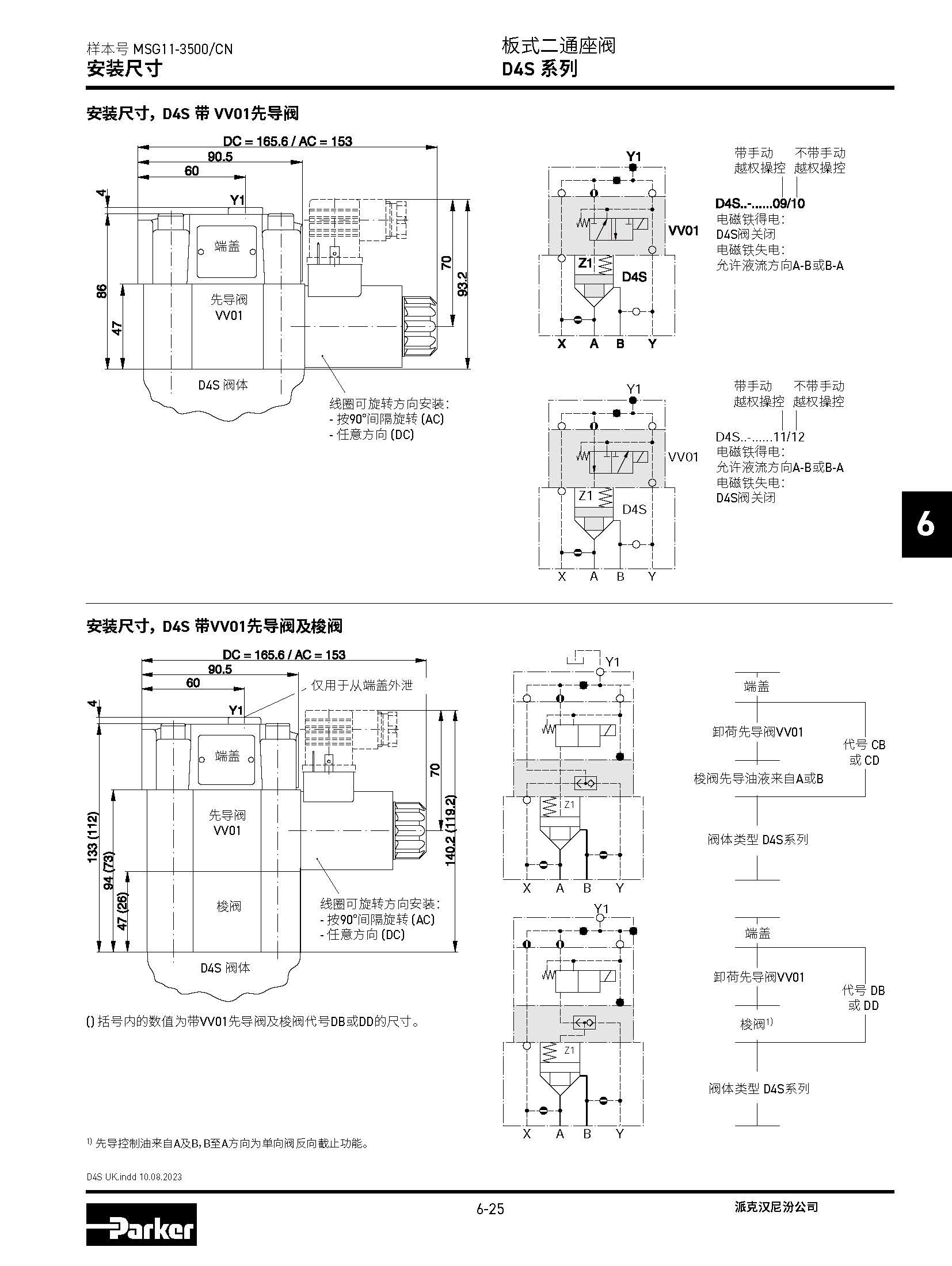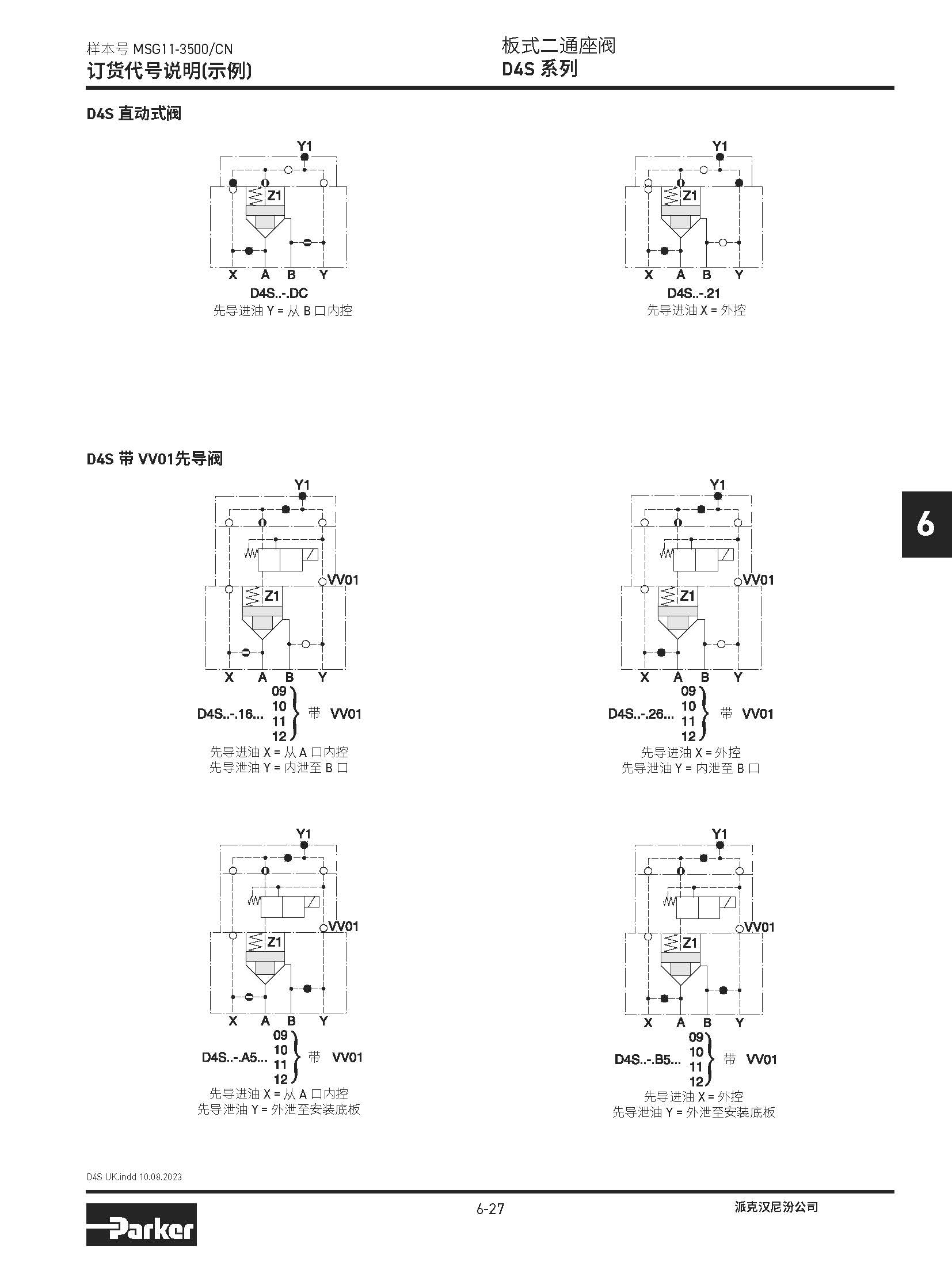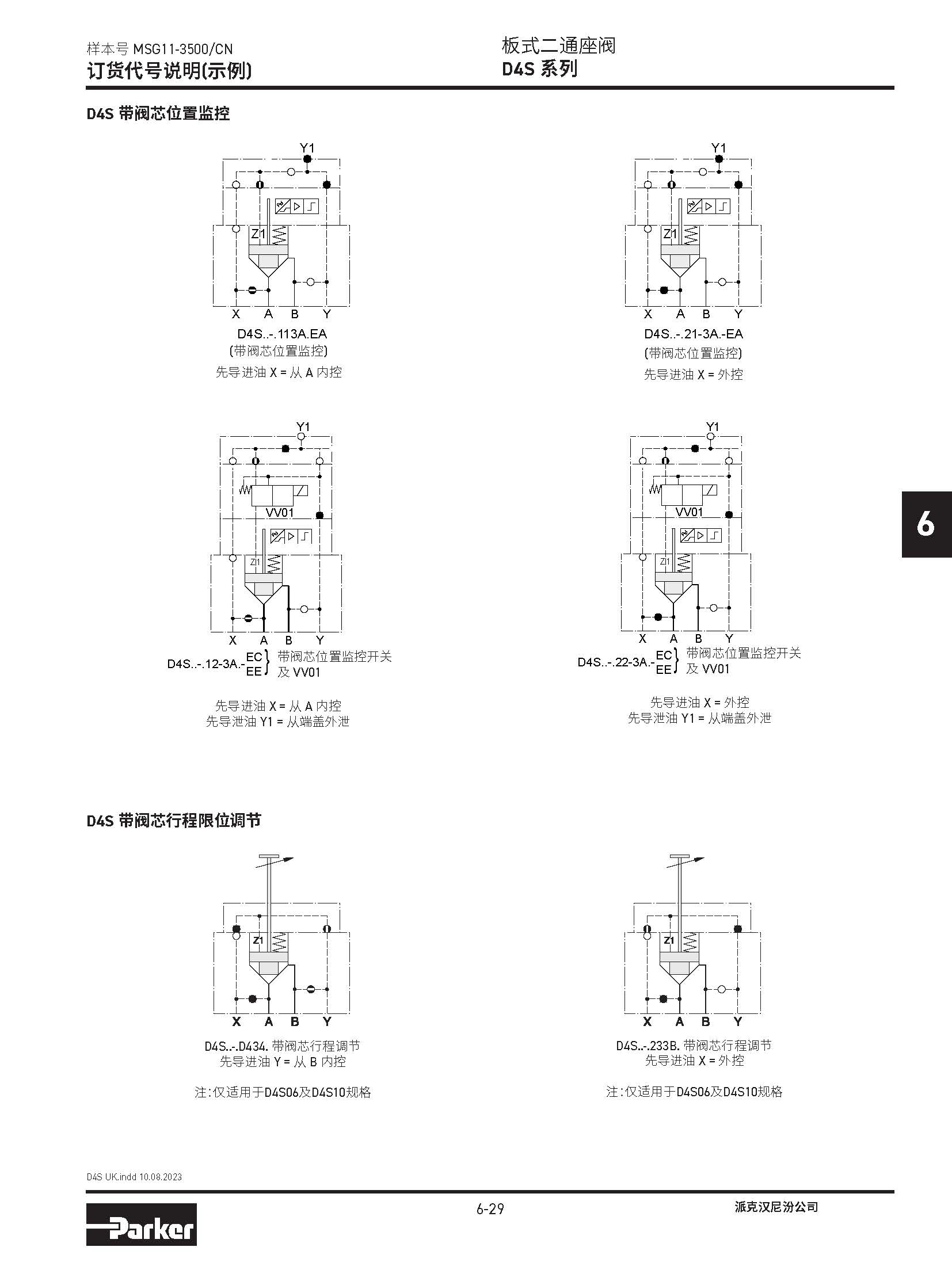 D4S系列板式二通座閥按方向控制功能設計,具有多種類 型的閥芯、彈簧以及控制蓋板 – 包括帶梭閥、帶閥芯行程限 位調節(jié)、電磁先導閥 (VV01) 以及閥芯位置監(jiān)控開關等等