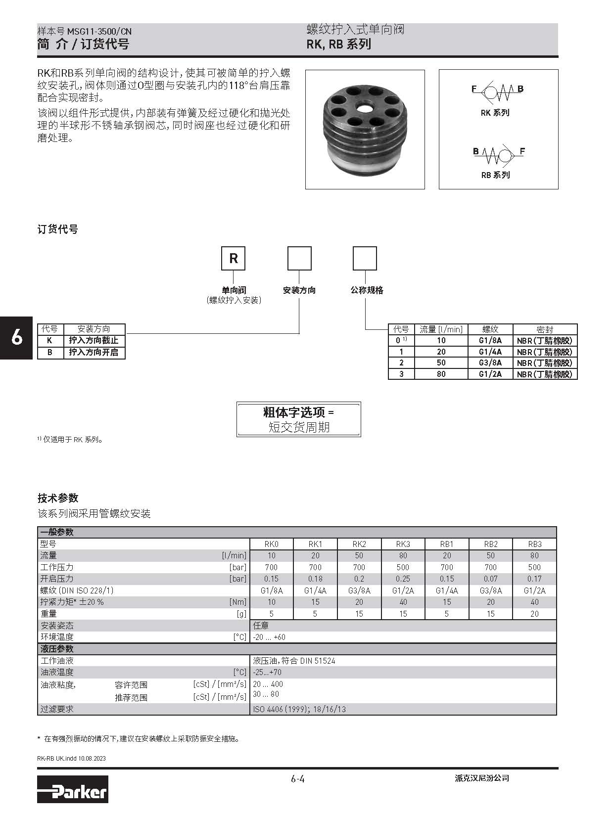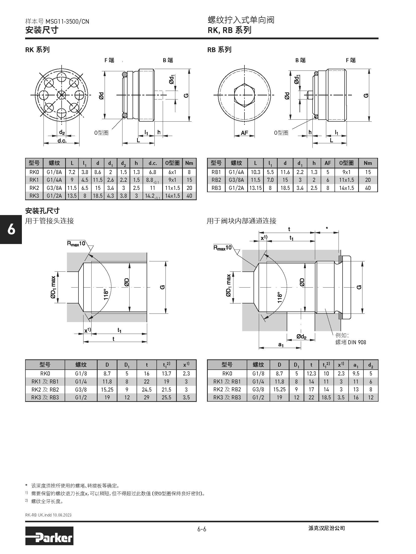 RK和RB系列單向閥的結構設計,使其可被簡單的擰入螺 紋安裝孔,閥體則通過 O型圈與安裝孔內的118°臺肩壓靠配合實現密封。