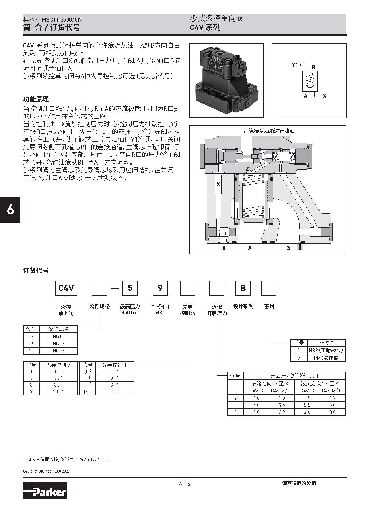 C4V 系列板式液控單向閥允許液流從油口A到B方向自由 流動,而相反方向截止。