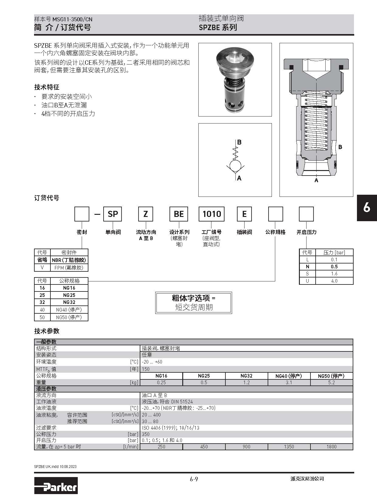 SPZBE 系列單向閥采用插入式安裝,作為一個功能單元用 一個內六角螺塞固定安裝在閥塊內部。
