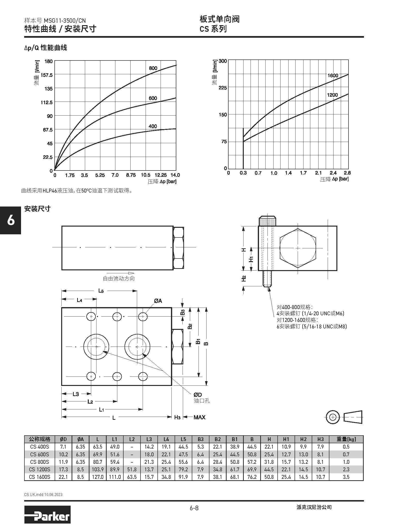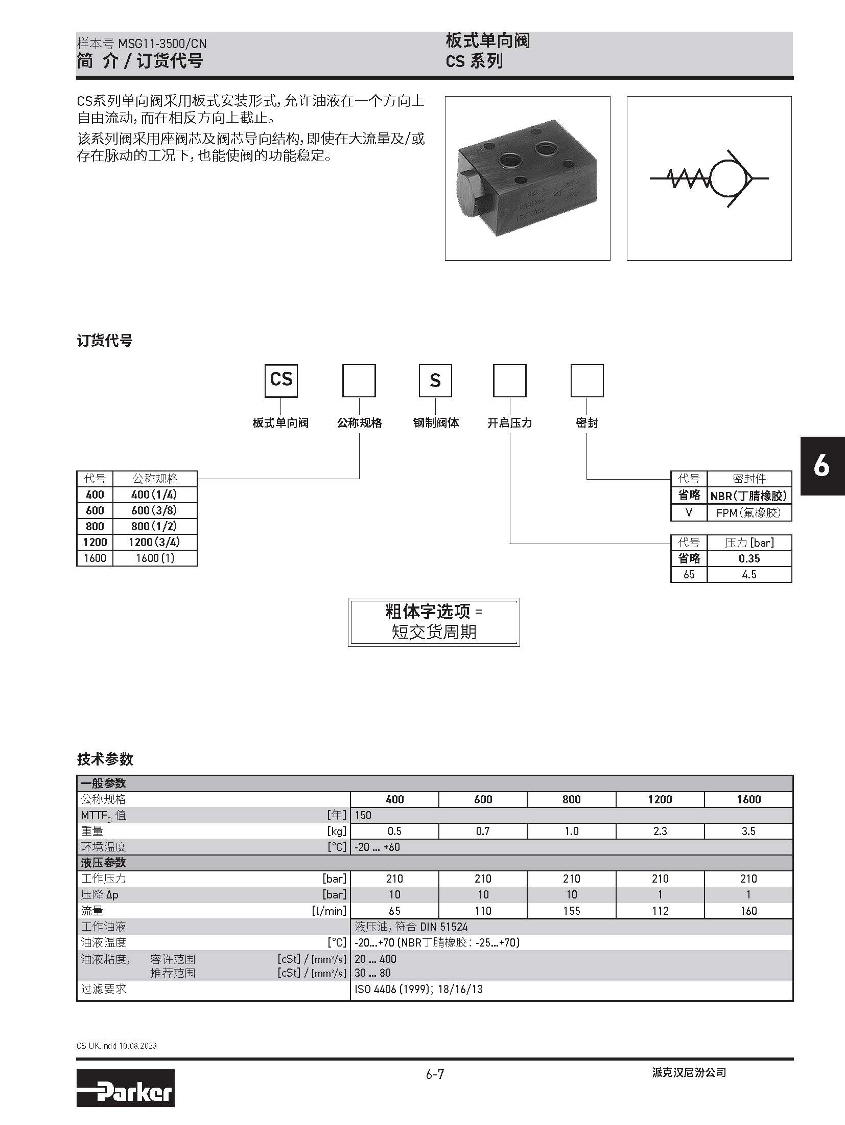 CS系列單向閥采用板式安裝形式,允許油液在一個方向上 自由流動,而在相反方向上截止。
