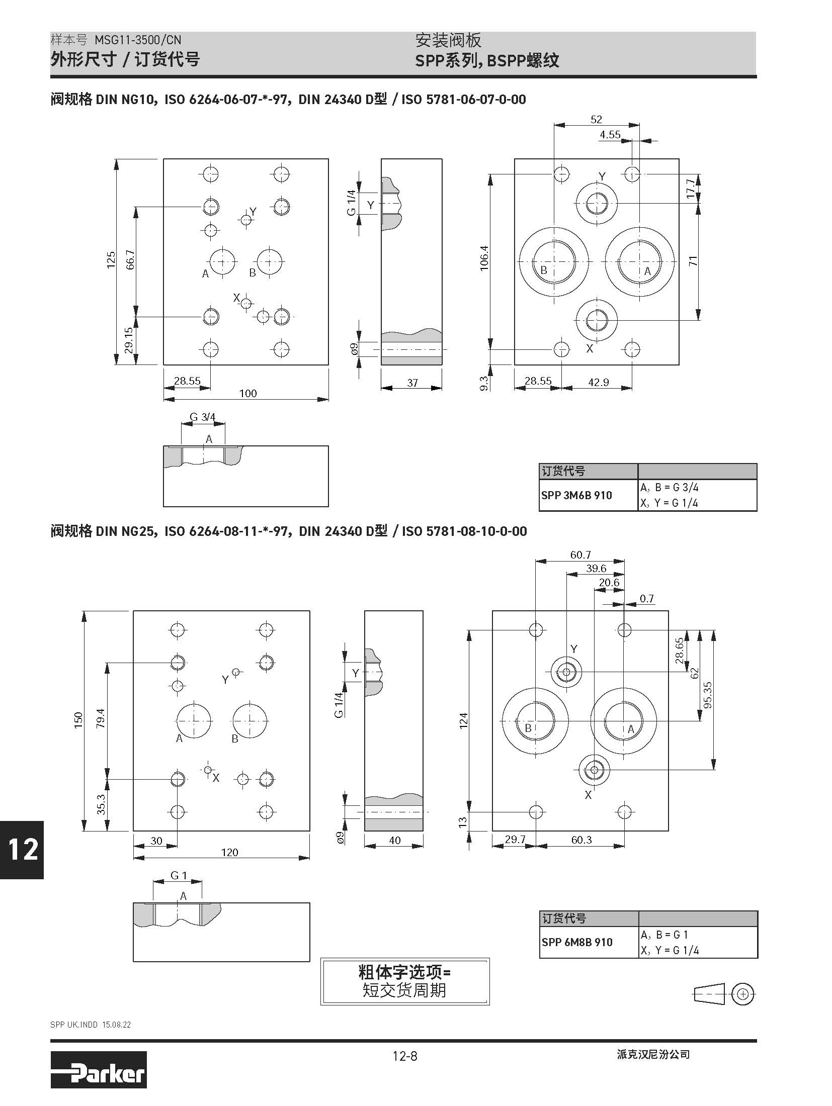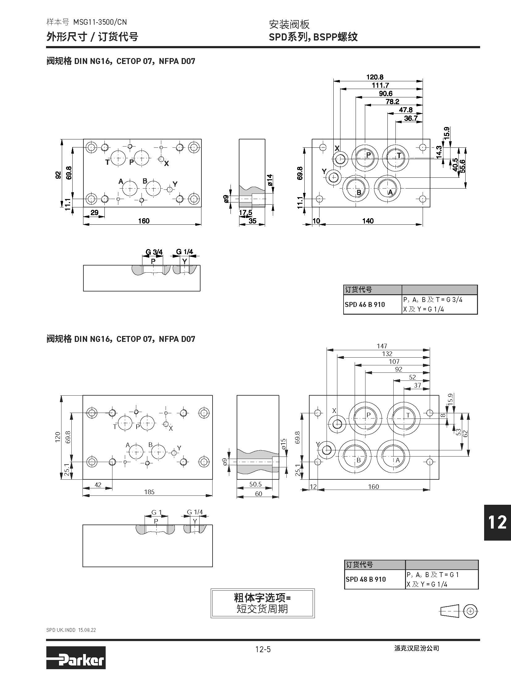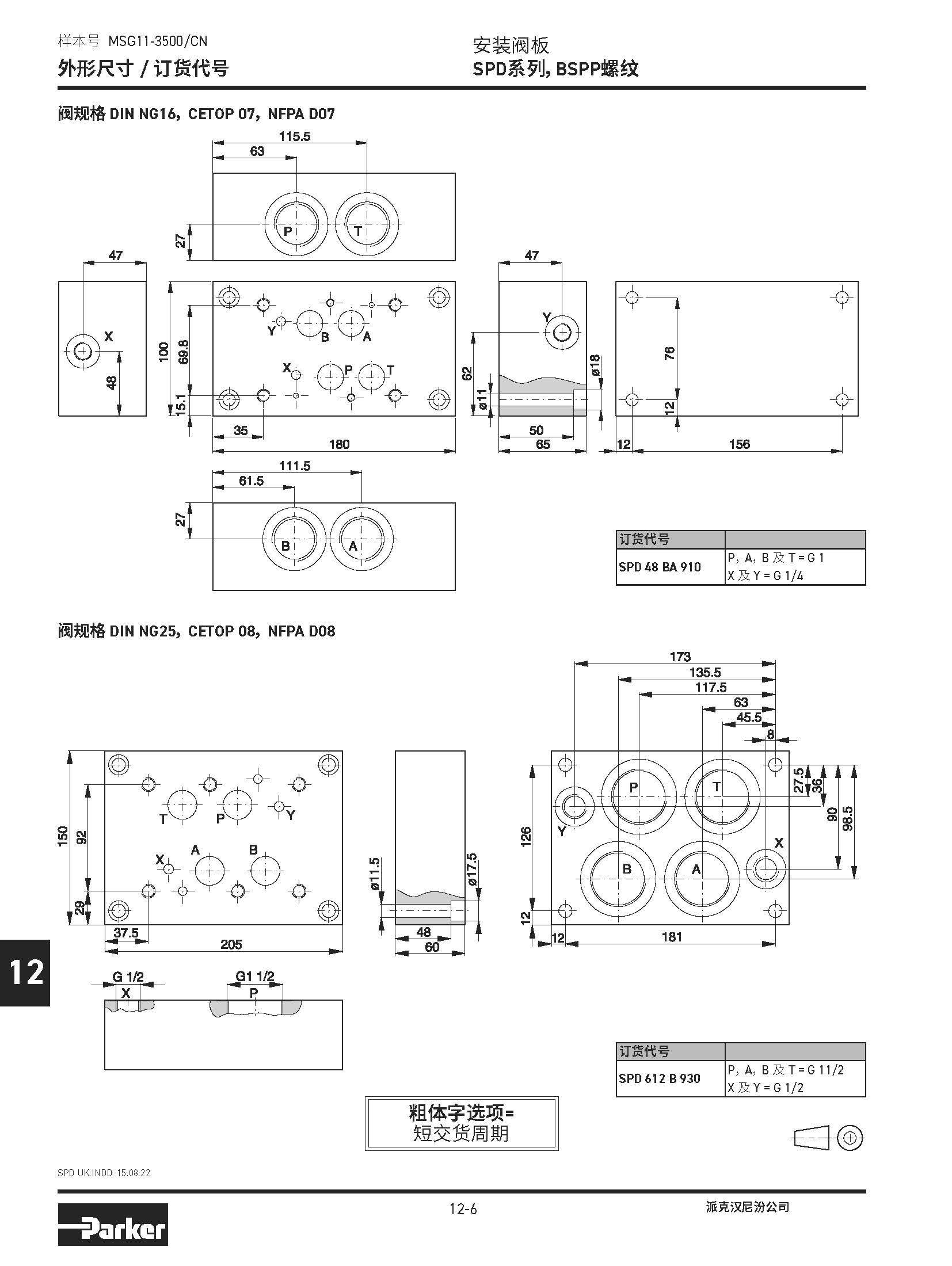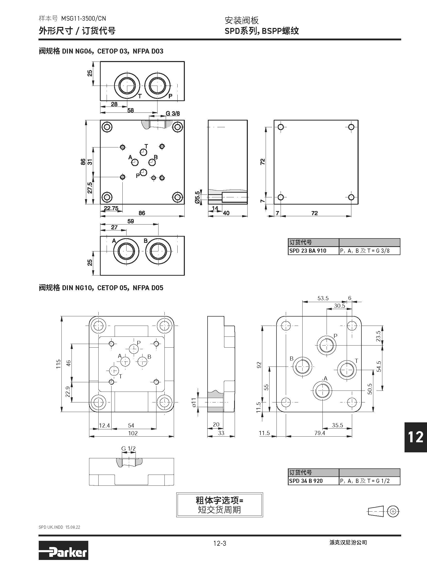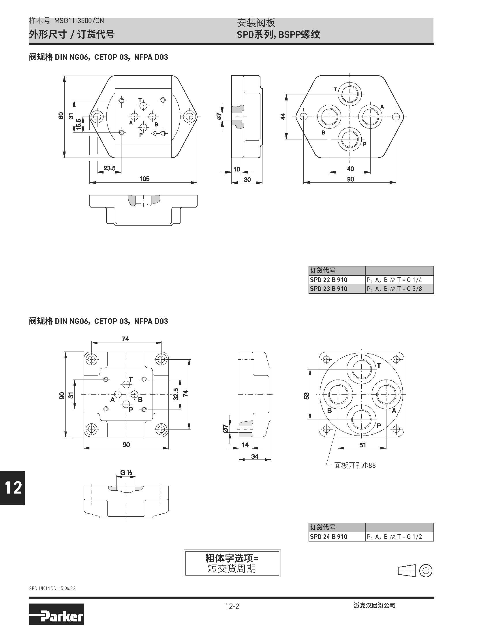 安裝閥板 SPD系列,BSPP螺紋