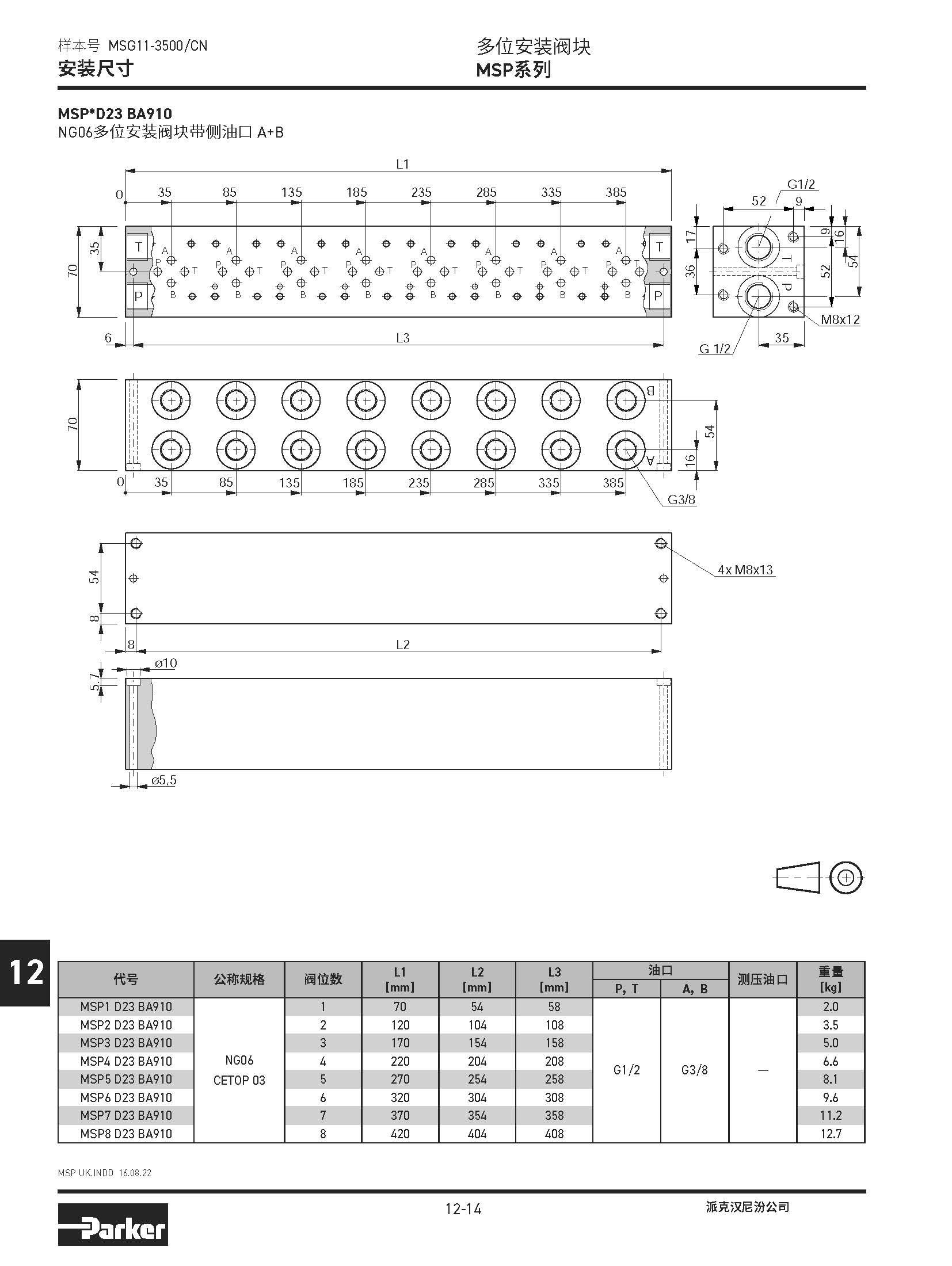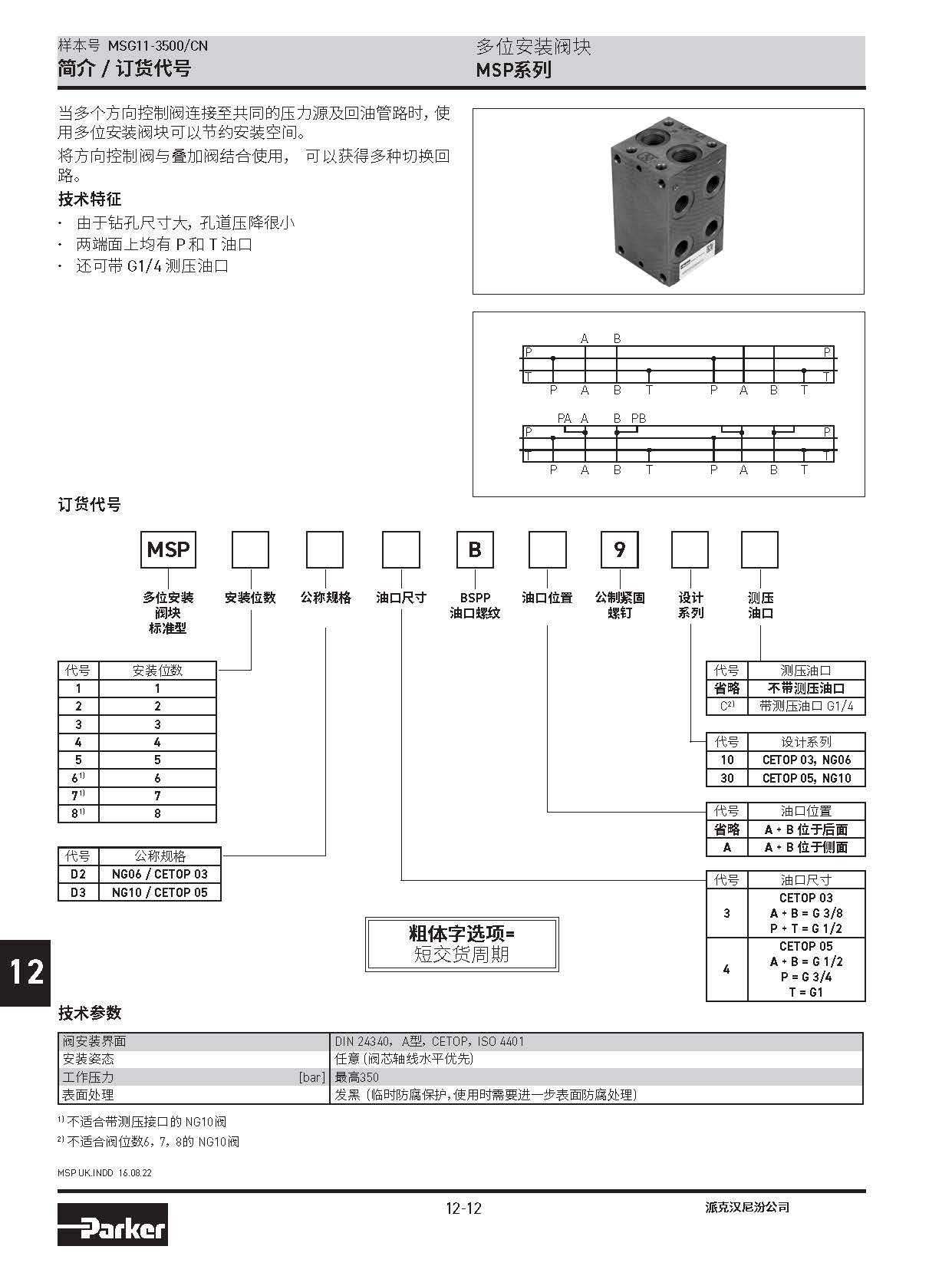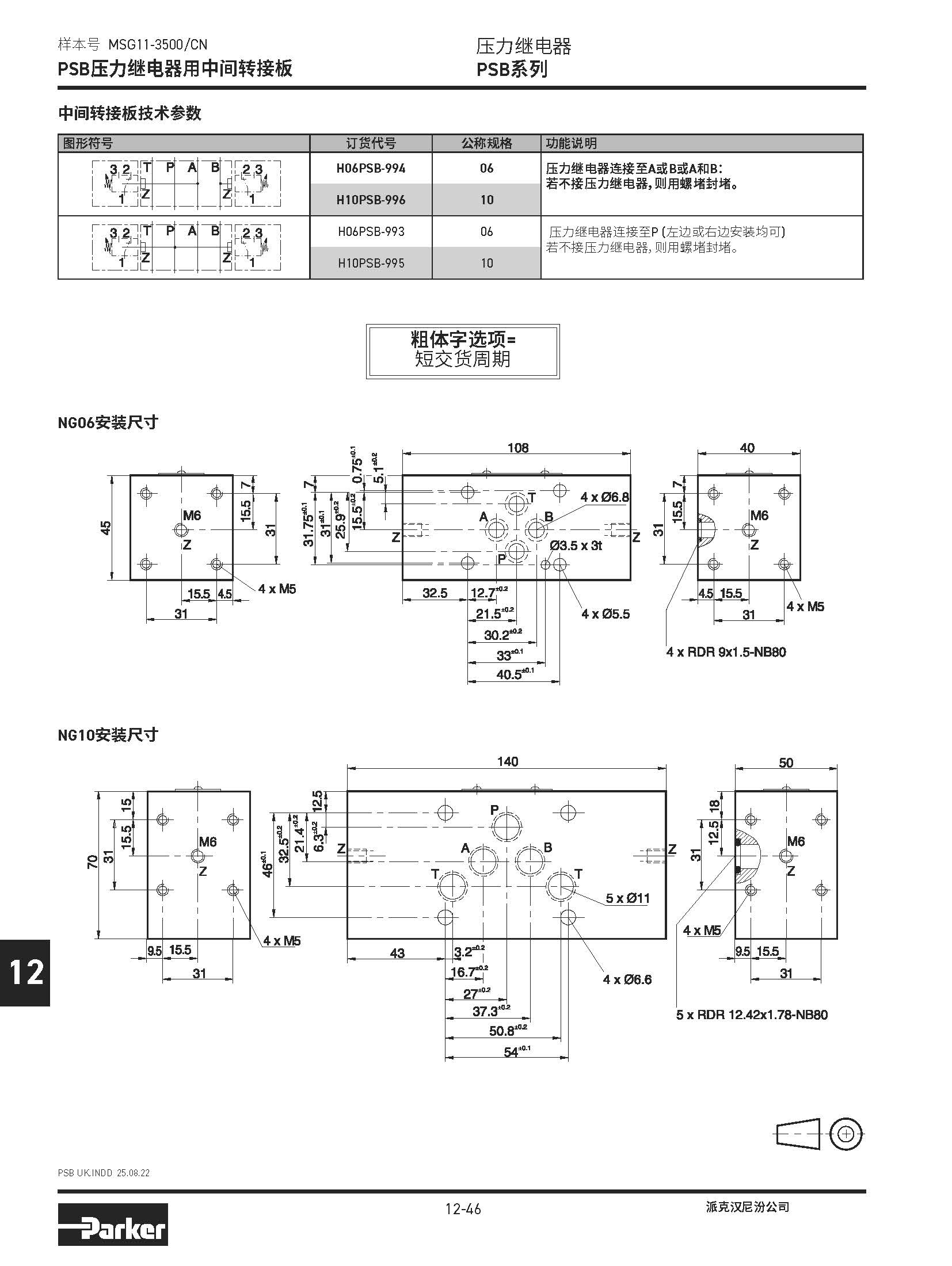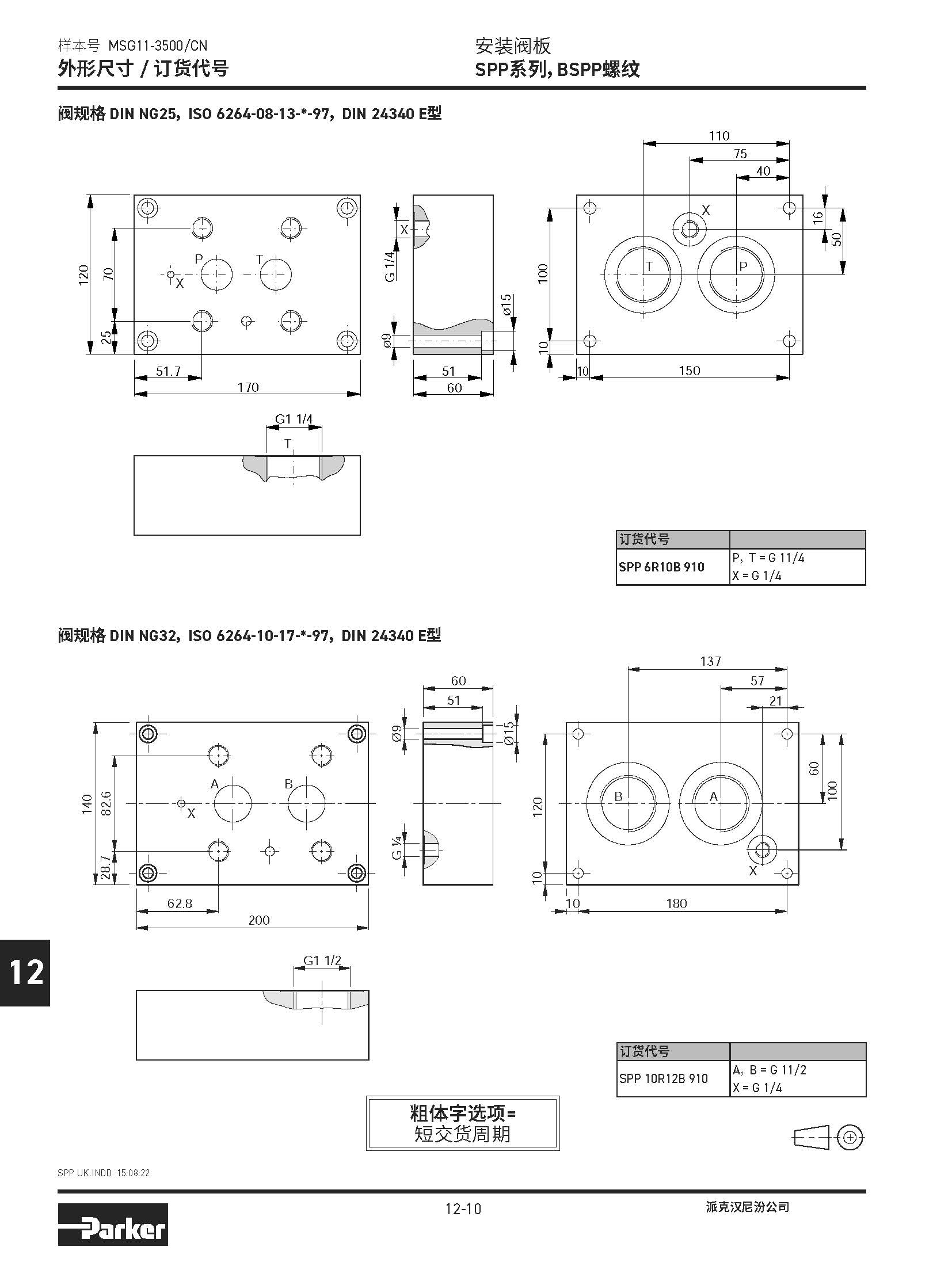 安裝閥板 SPD系列,BSPP螺紋