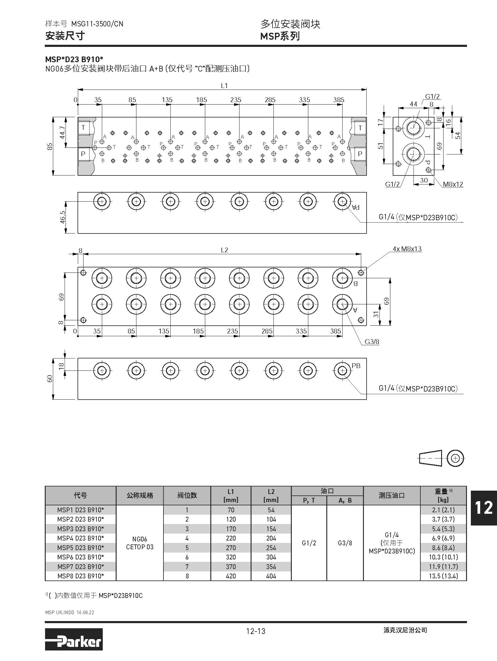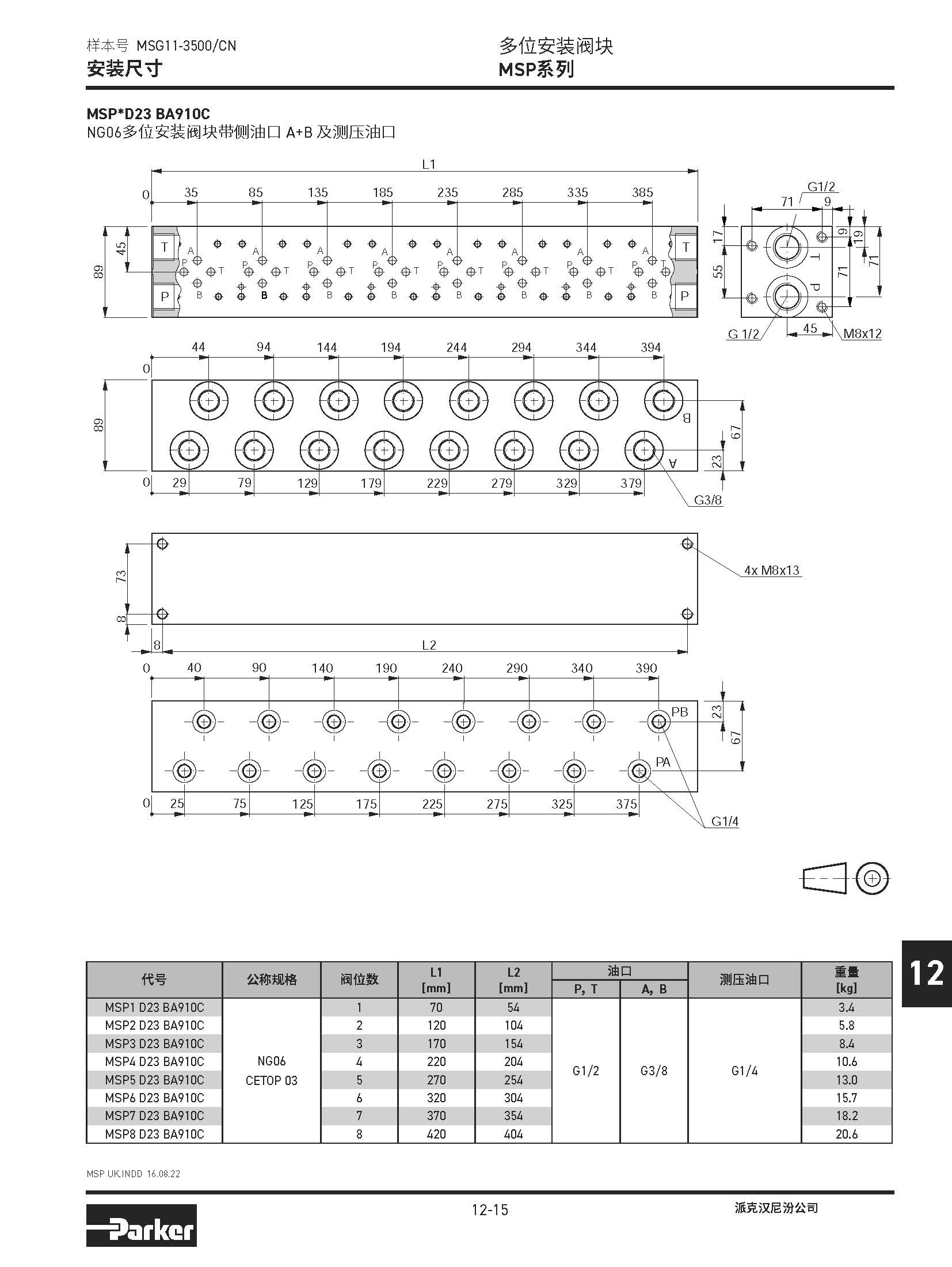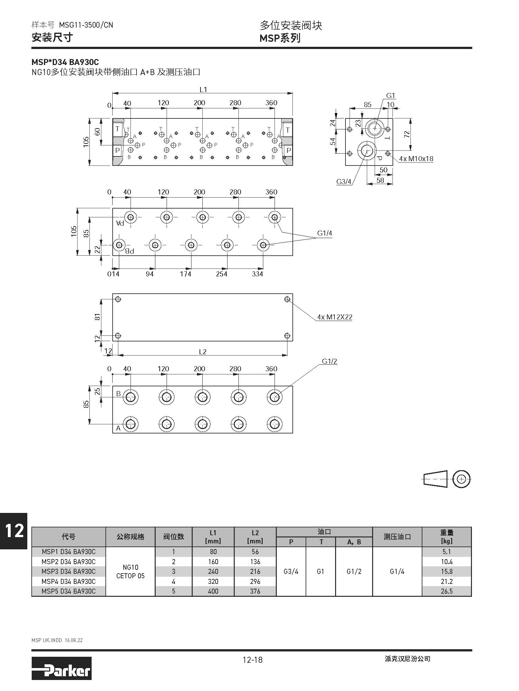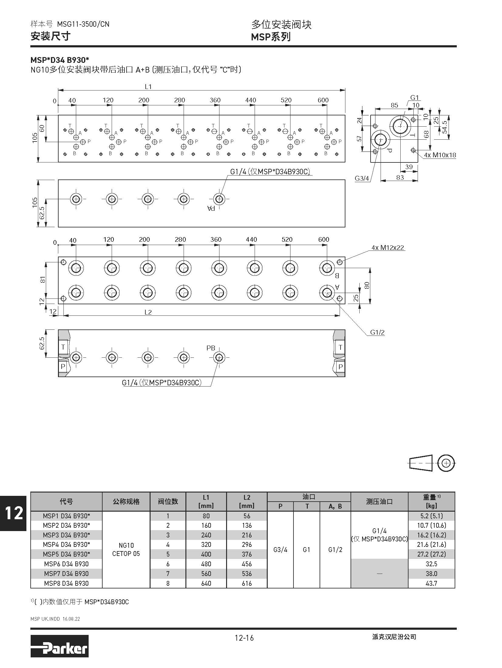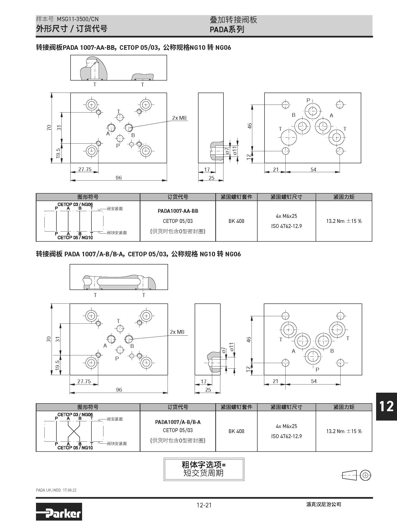 安裝閥板 SPD系列,BSPP螺紋
