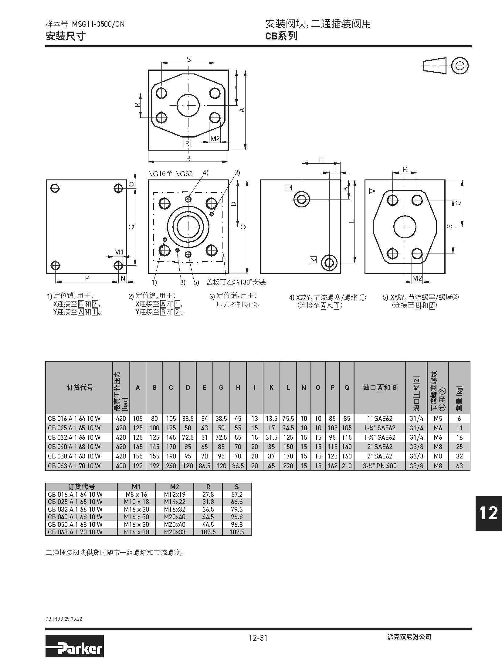 安裝閥塊,二通插裝閥用 CB系列