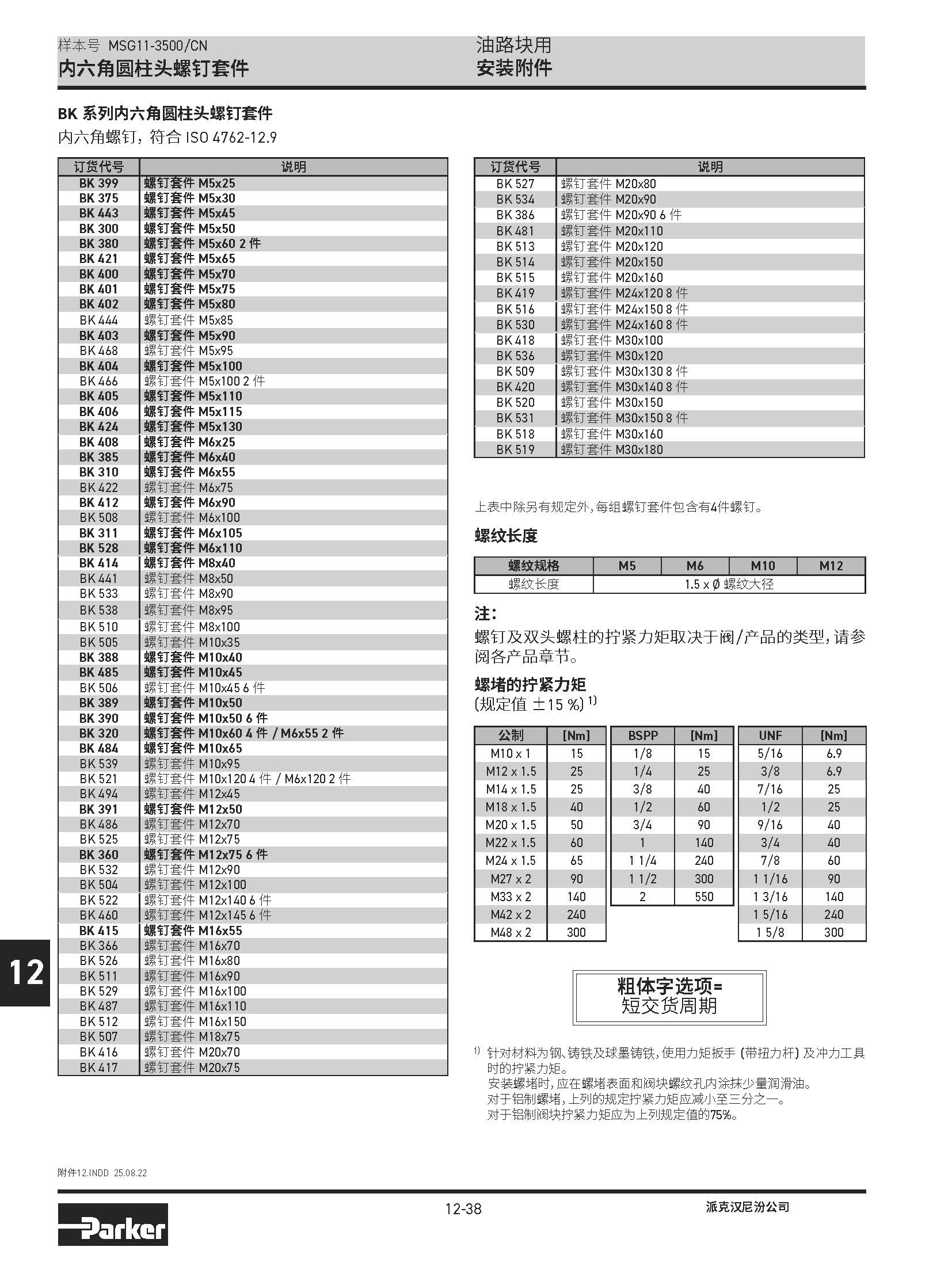 油路塊用 安裝附件