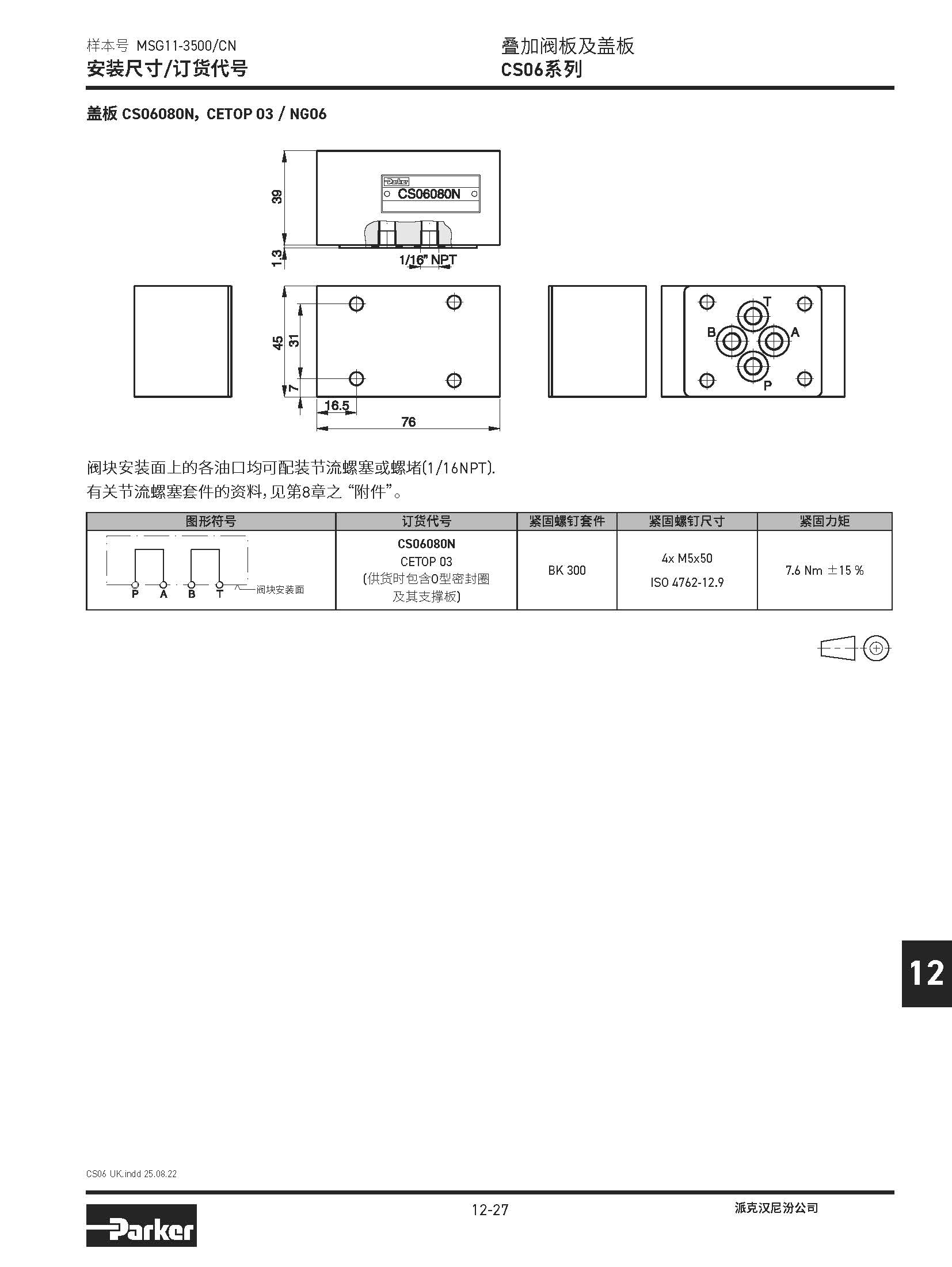 疊加閥板及蓋板 CS06系列