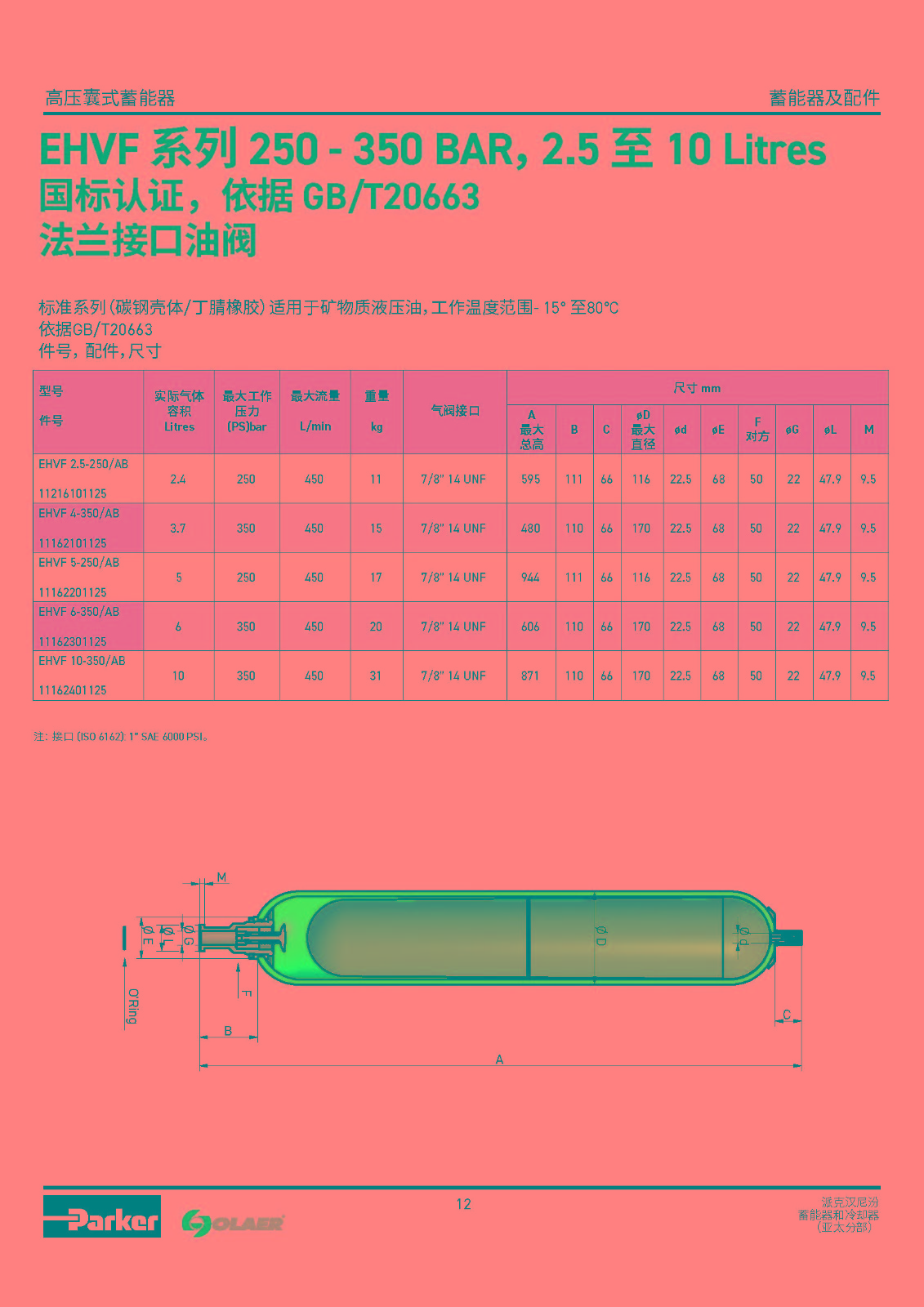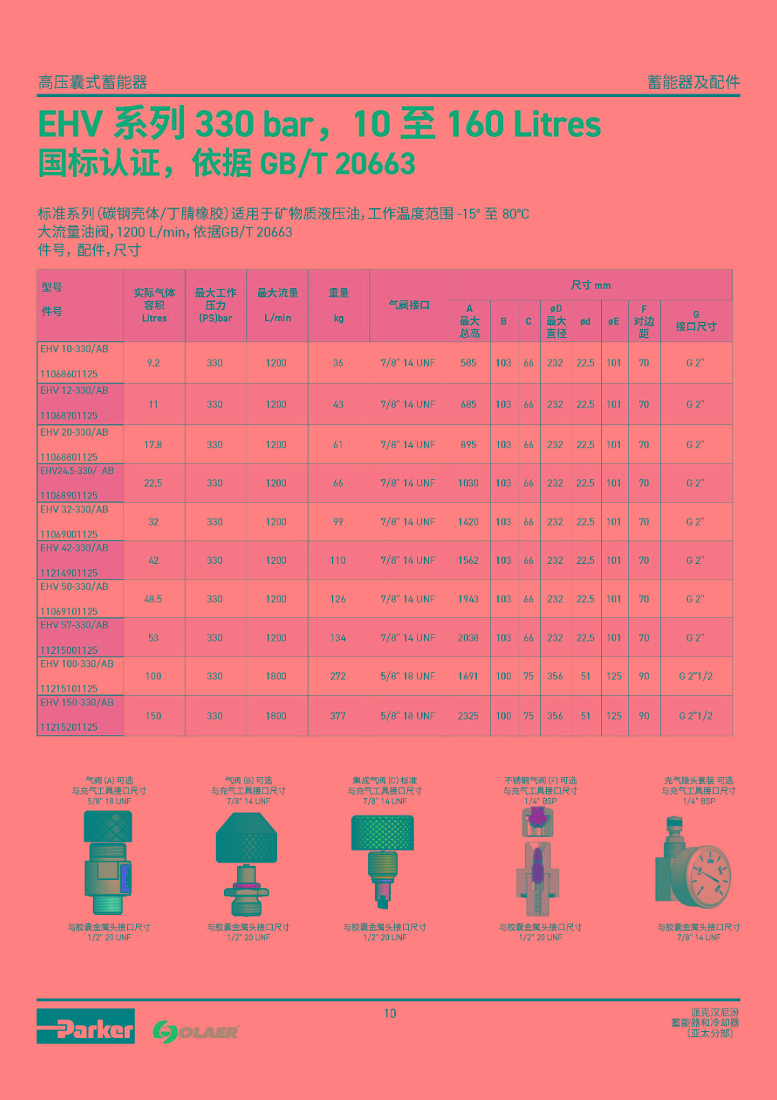 EHV 系列 250 - 350 bar,1 至 10 Litres 國標認證,依據(jù) GB/T 20663