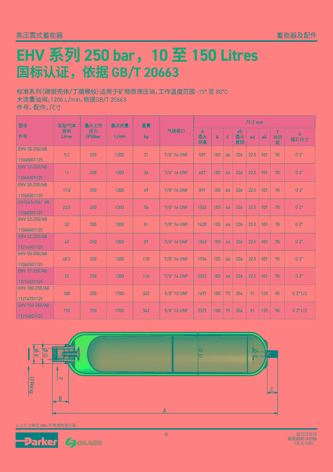 EHV 系列 250 bar,10 至 150 Litres 國標認證,依據(jù) GB/T 20663