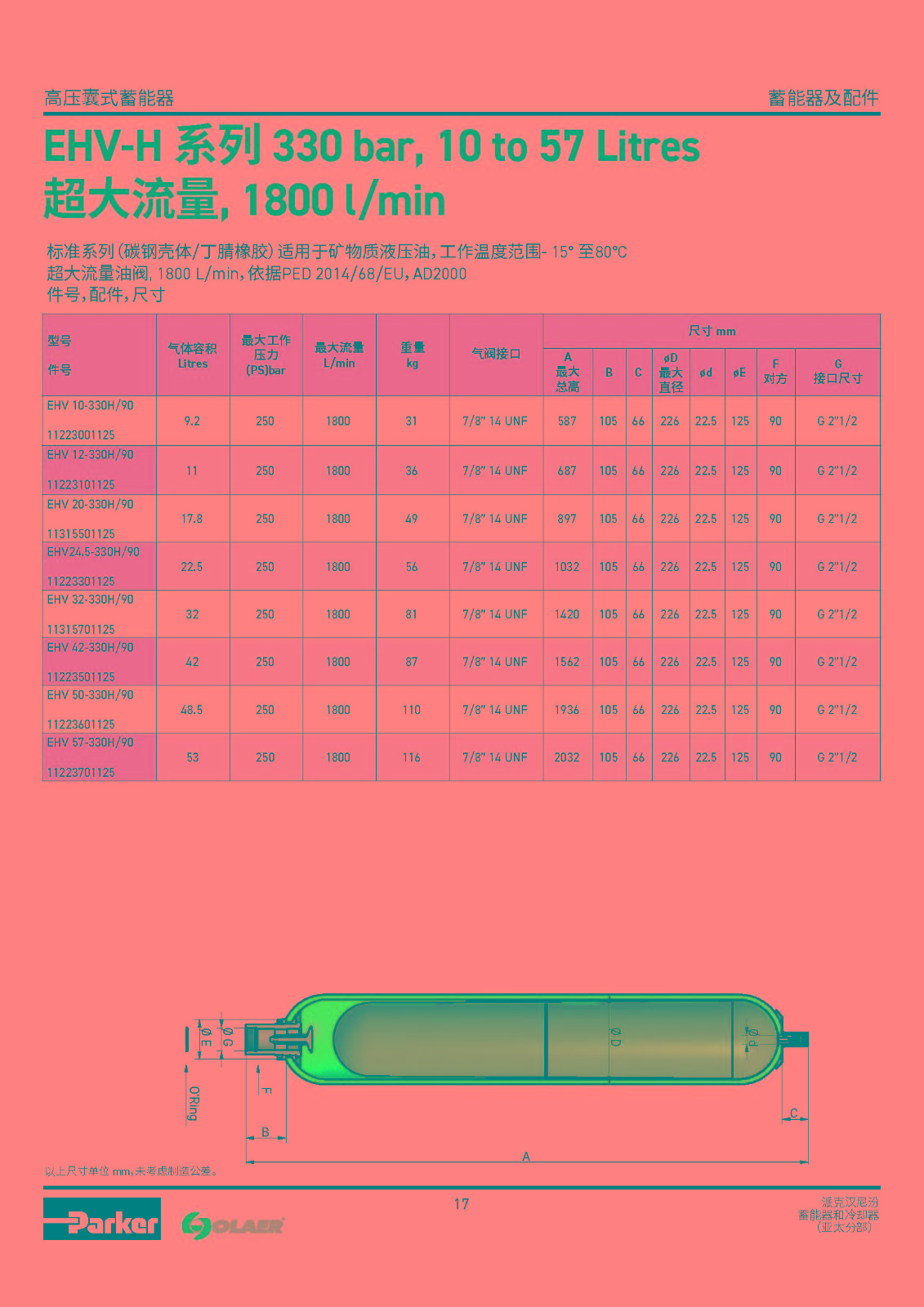 EHV 系列 330 bar,10 至 160 Litres 超大流量1800L/min 國標認證,依據(jù) GB/T 20663