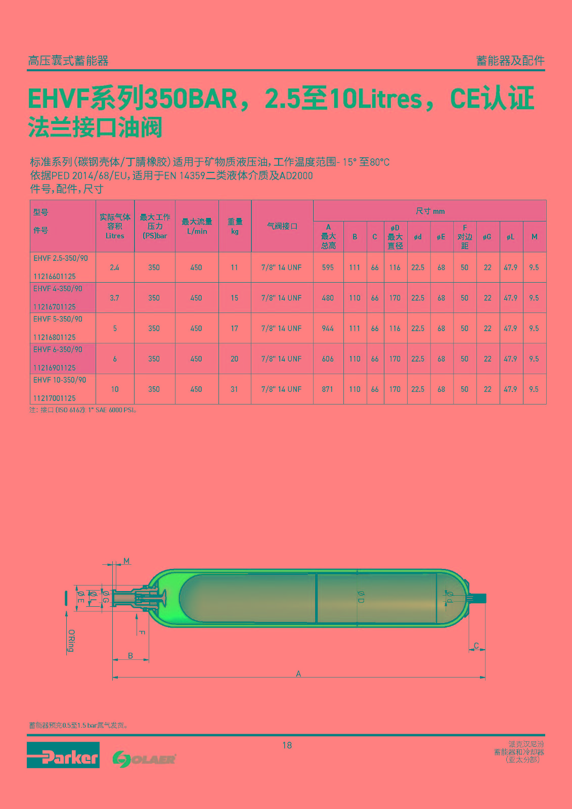 EHV系列350 bar,0.5 至 10 L,CE認證