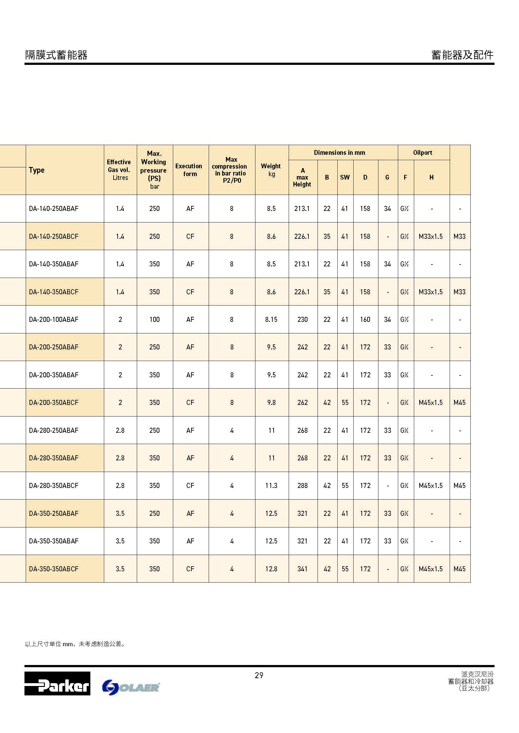 標(biāo)準(zhǔn)型(碳鋼外殼/丁腈橡膠隔膜),適用于礦物質(zhì)液壓油,工作溫度范圍:-20°C至80°C, 低溫型(碳鋼外殼/氯醚橡膠隔膜),適用于礦物質(zhì)液壓油,工作溫度范圍:-40°C至120°C