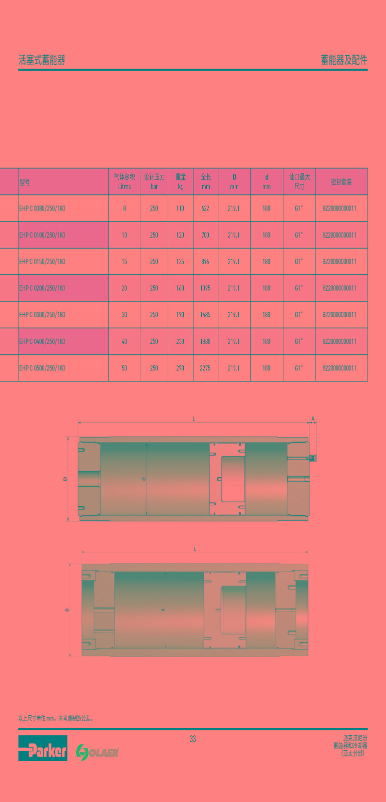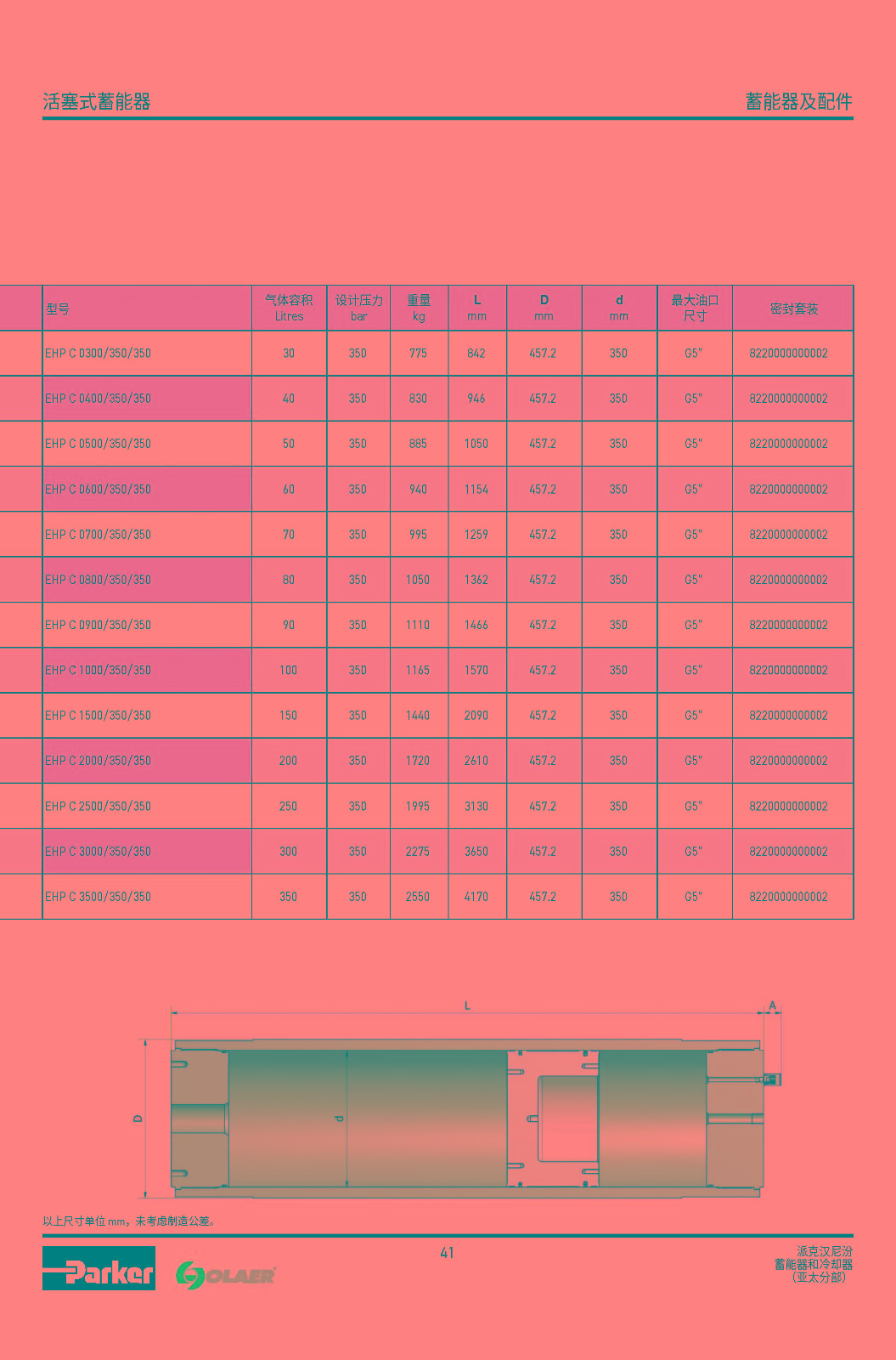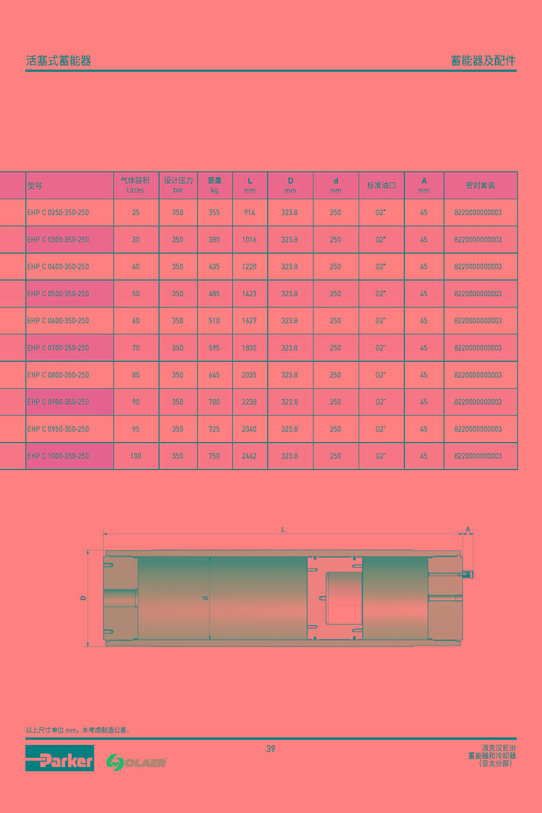 A 系列 250 - 350 Bar 活塞式蓄能器