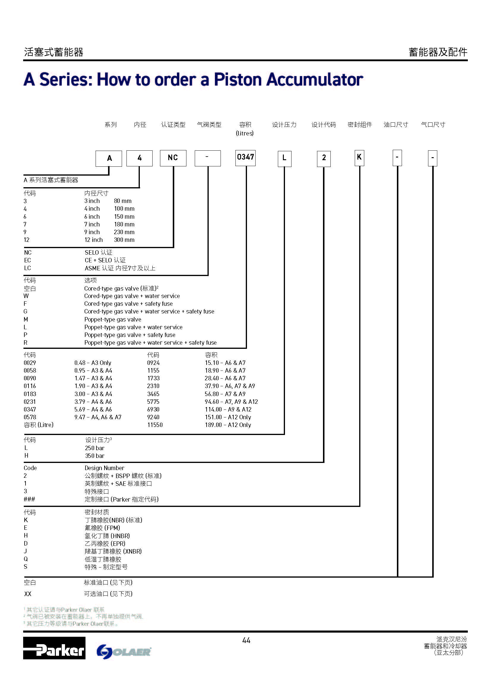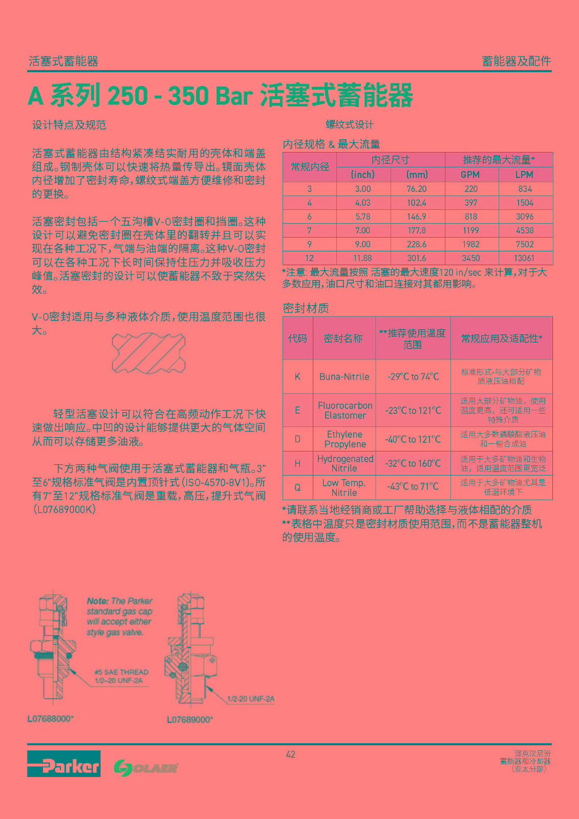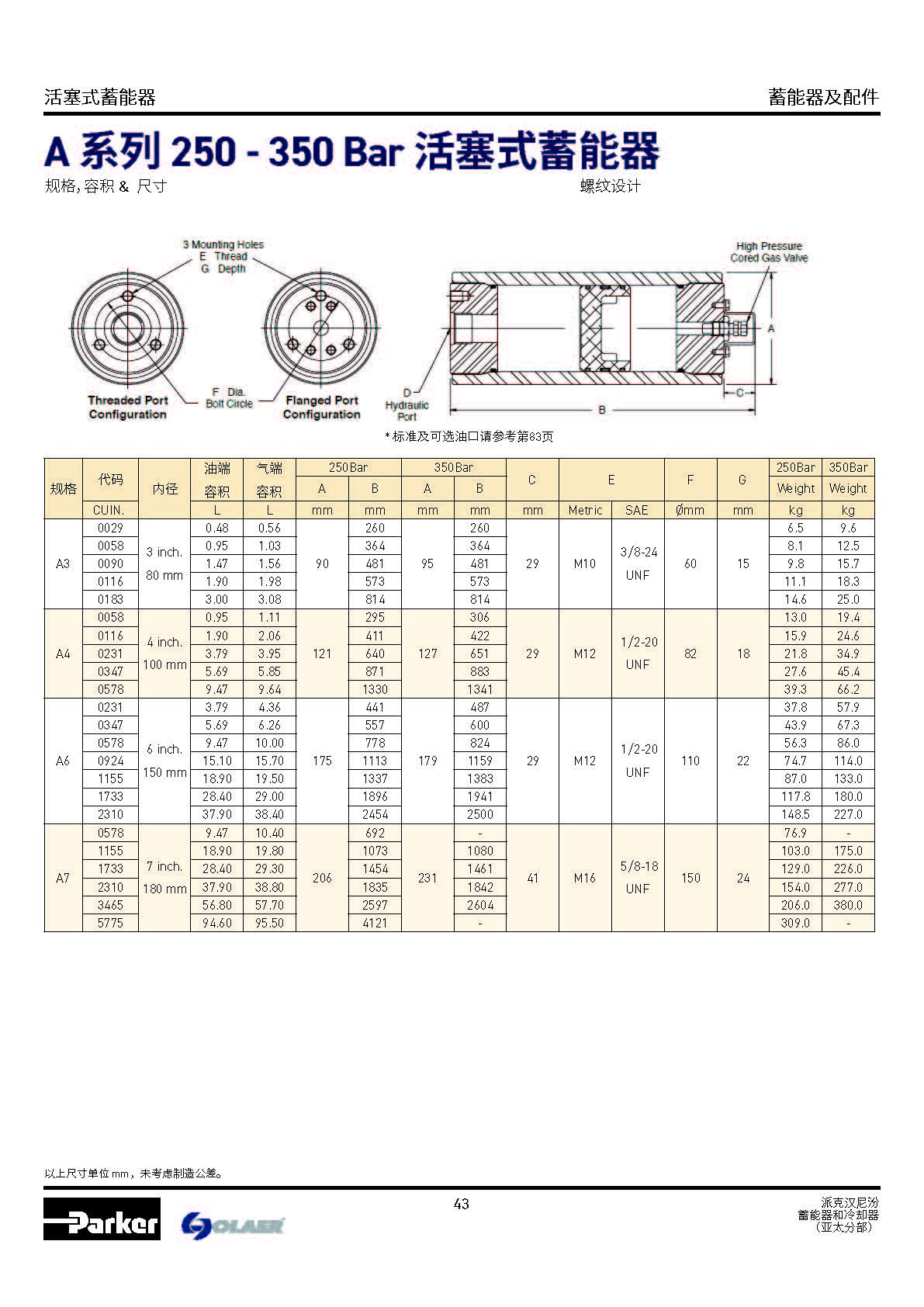 A 系列 250 - 350 Bar 活塞式蓄能器