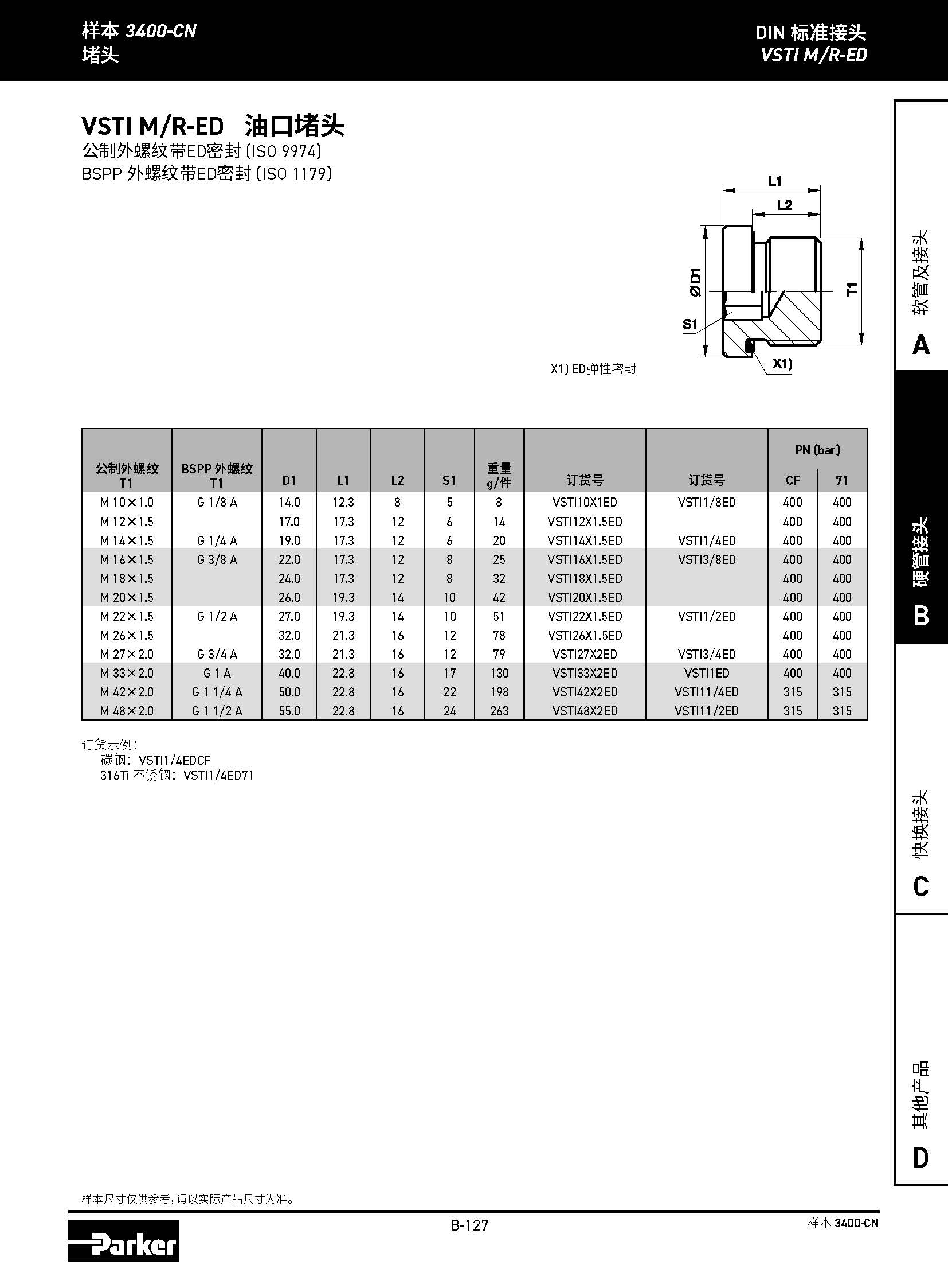 VSTI M/R-ED 油口堵頭 公制外螺紋帶 BSPP 外螺紋帶 ED ED 密封 密封 (ISO 9974) (ISO 1179)