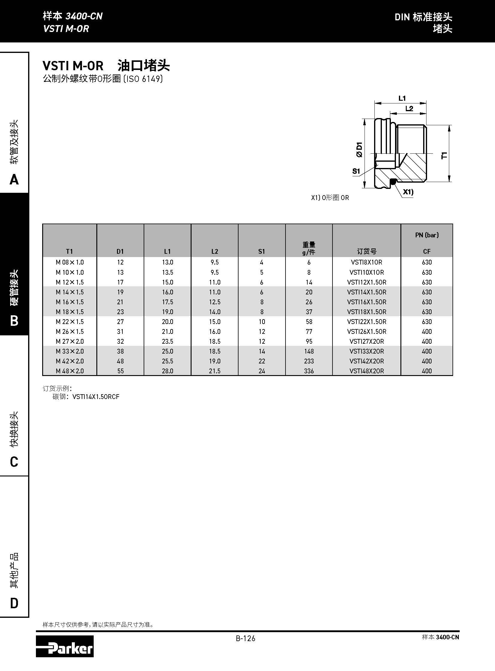 VSTI M-OR 油口堵頭 公制外螺紋帶O形圈 (ISO 6149)