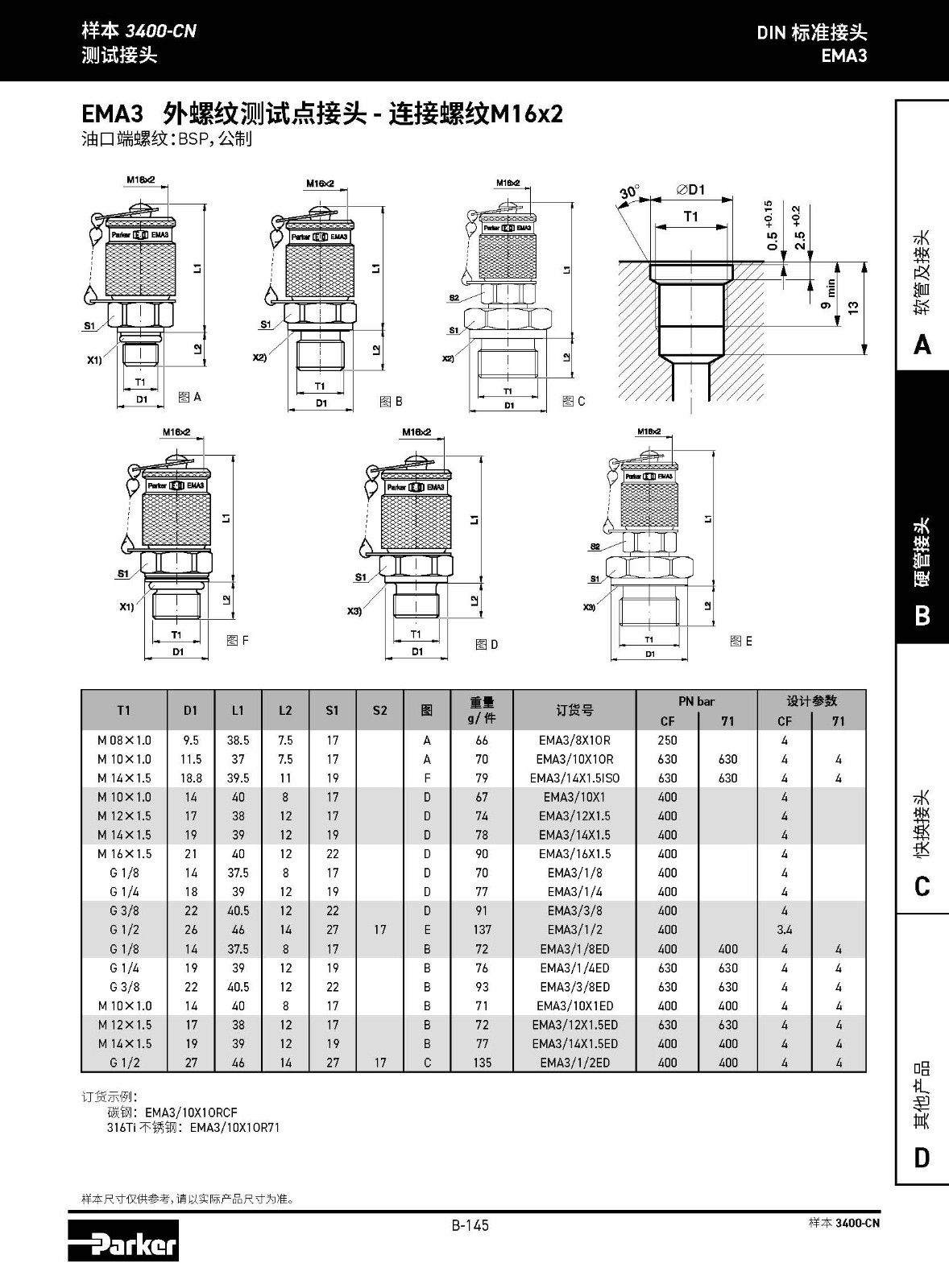 EMA3 外螺紋測(cè)試點(diǎn)接頭 - 連接螺紋M16x2 油口端螺紋:BSP,公制